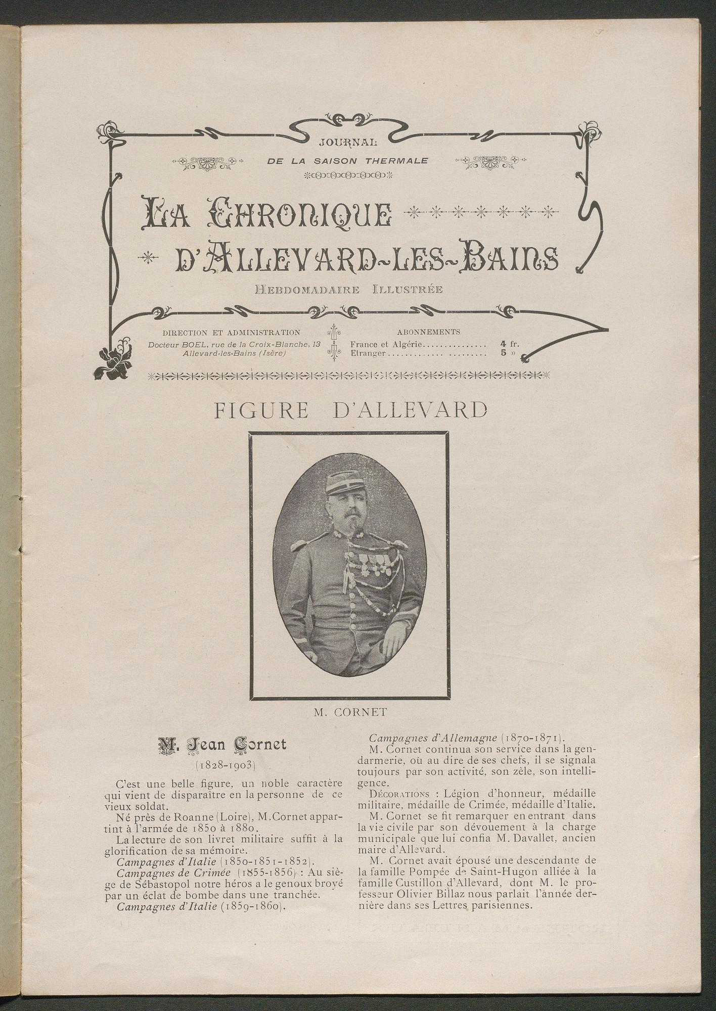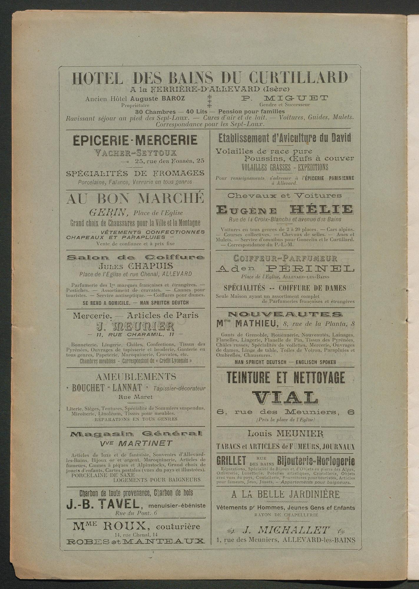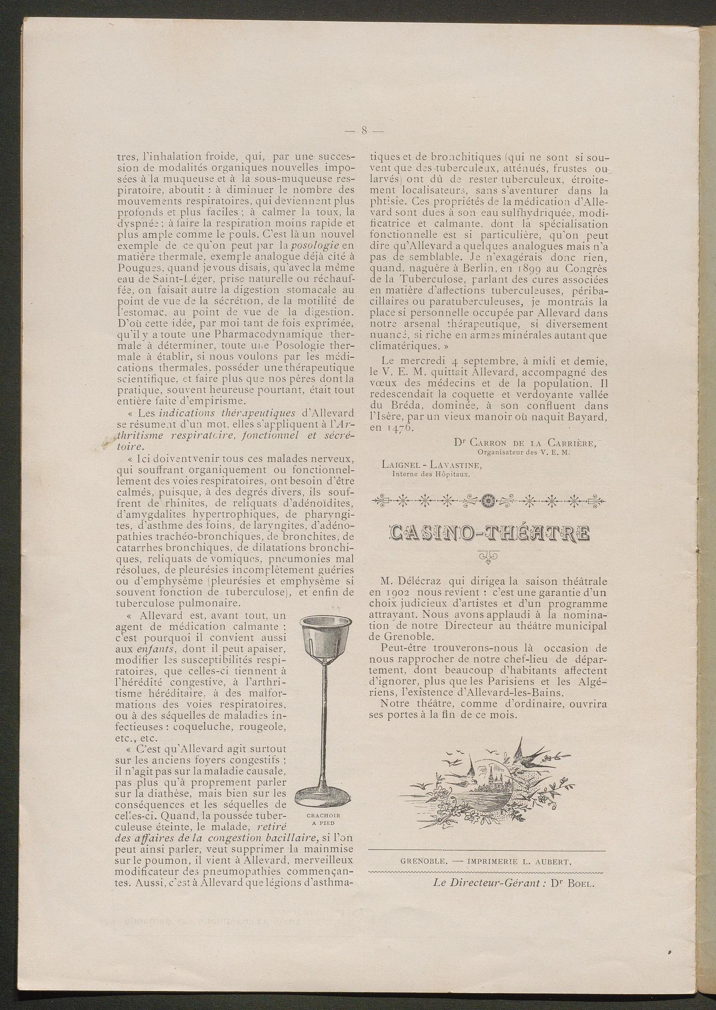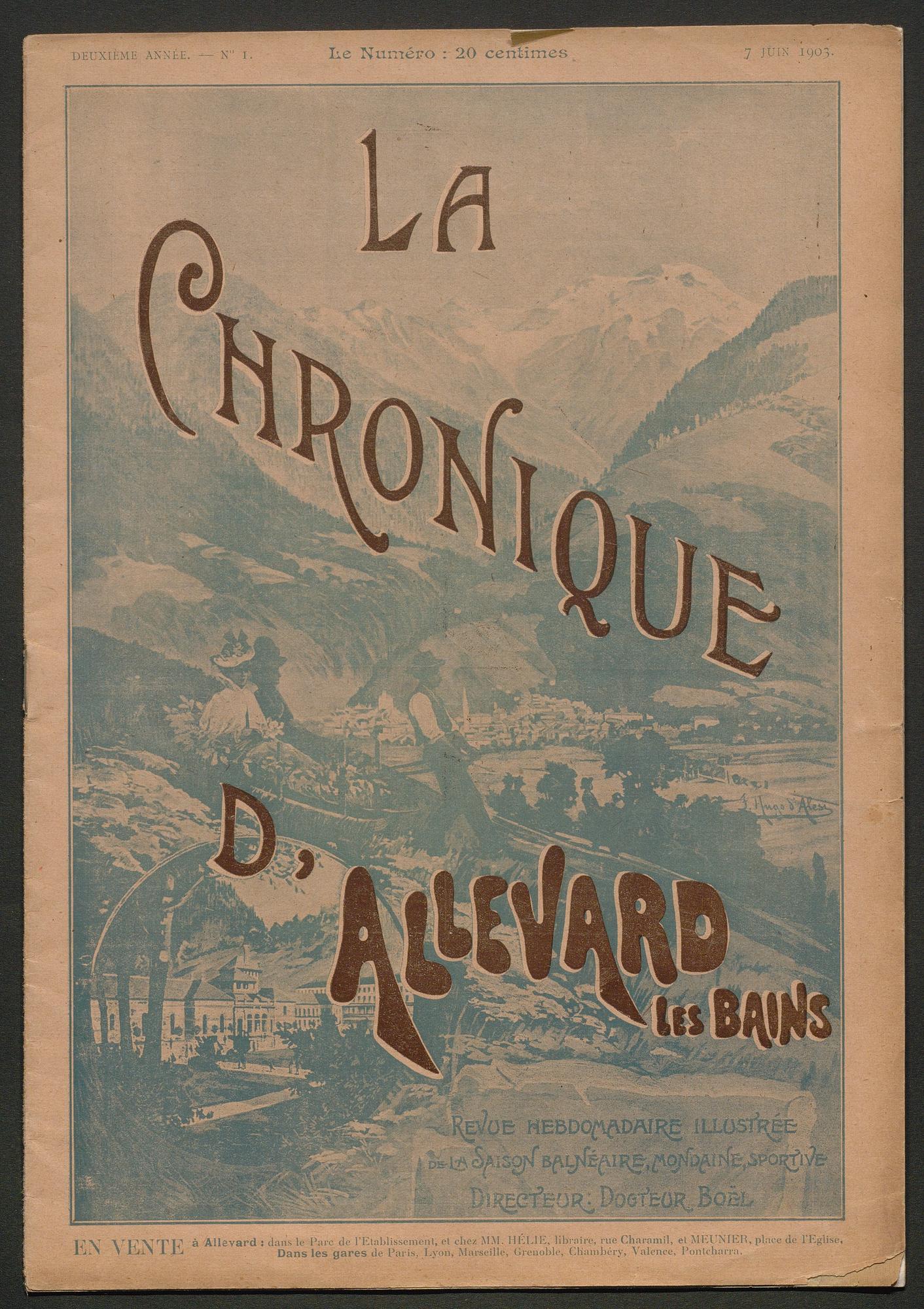 DIRECTEUR : DOCTEUR BOËL - EN VENTE à Allevard : dans le Parc de l'Etablissement, et chez MM. HÉLIE libraire, rue Charamil, et MEUNIER, place de l'Eglise.