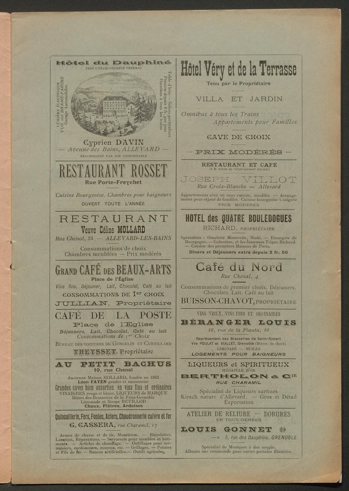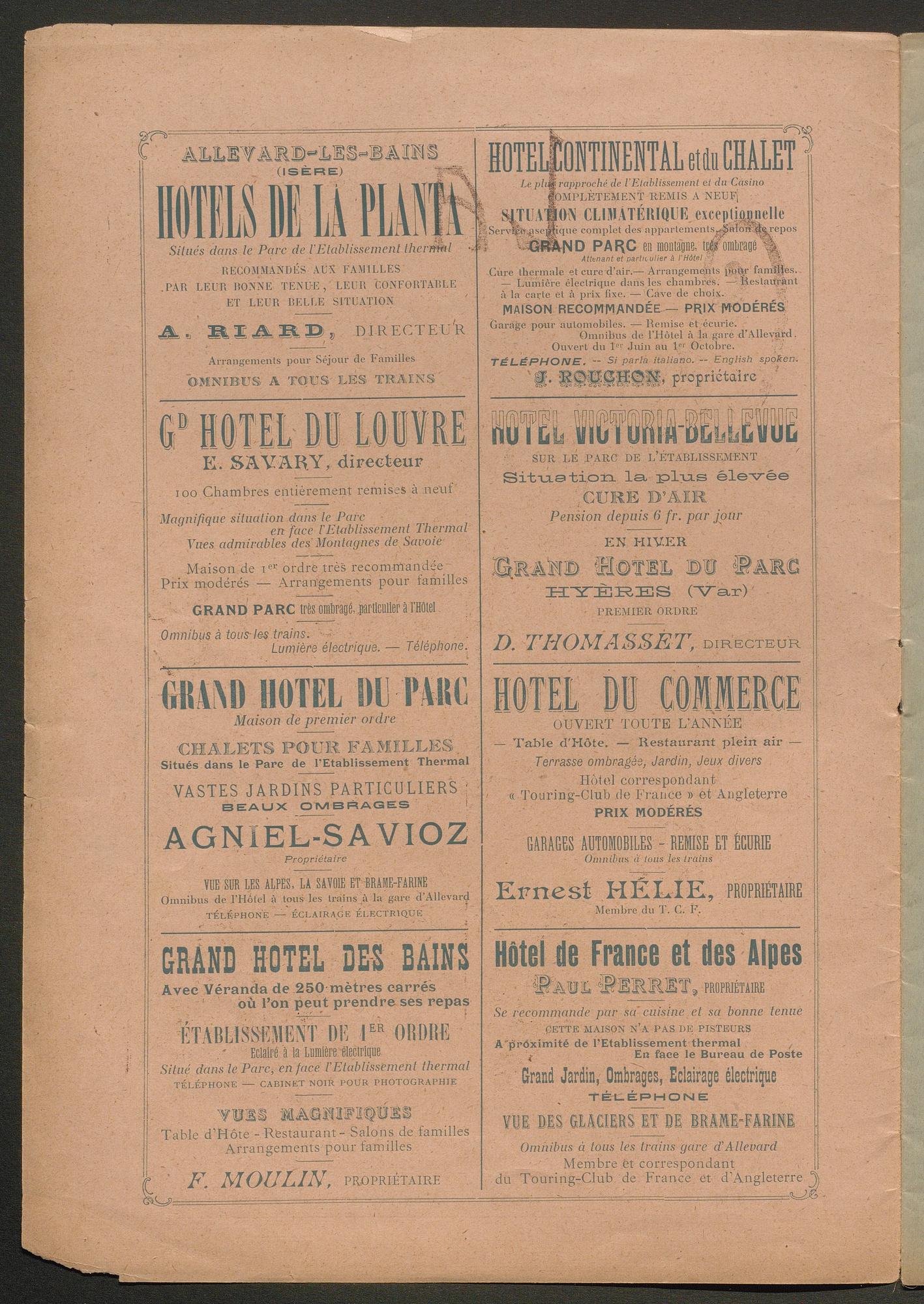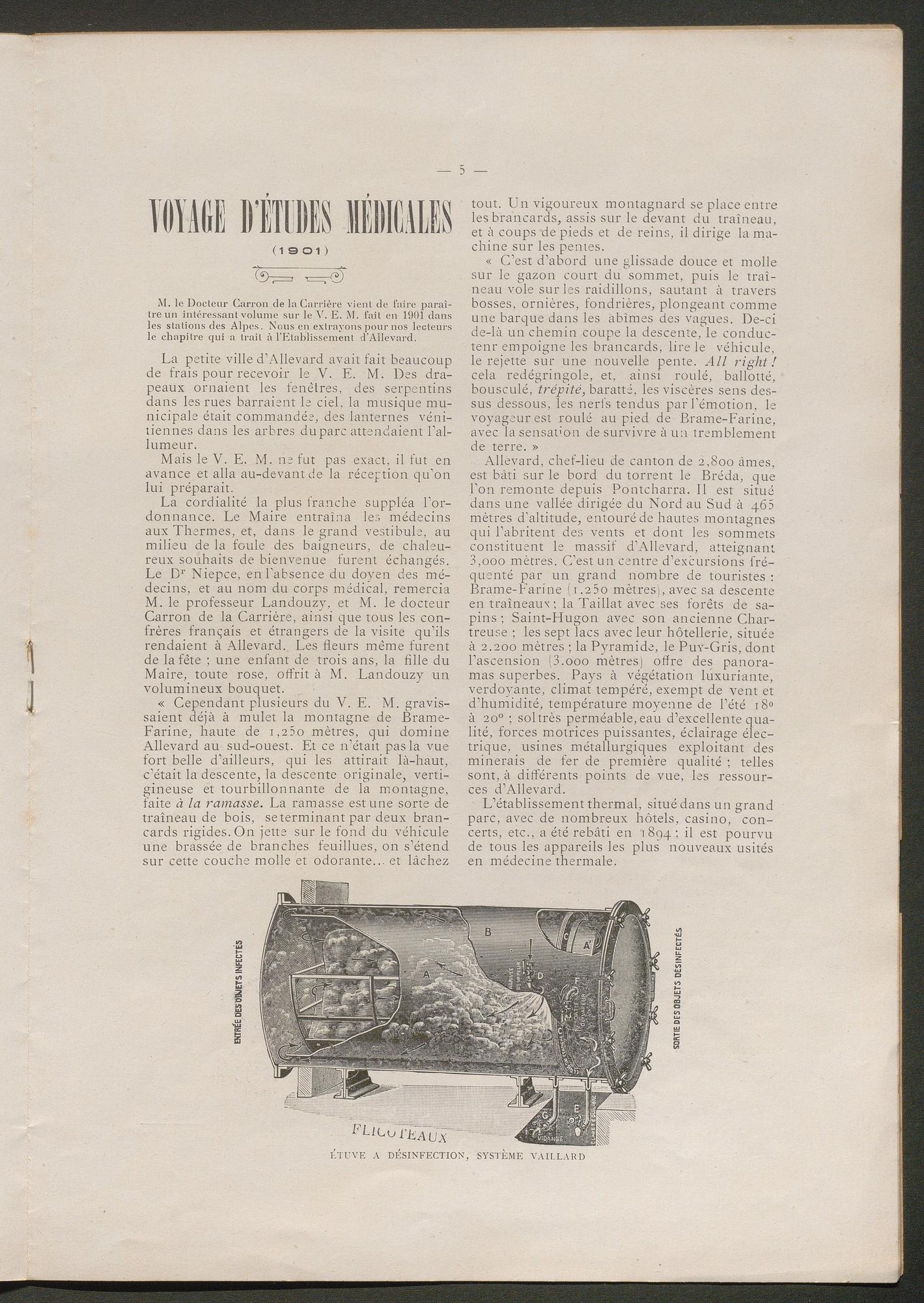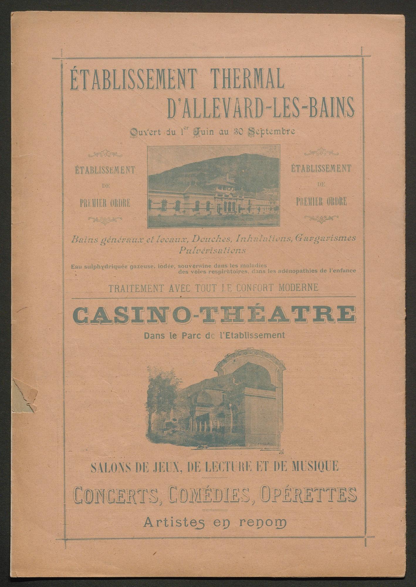 DIRECTEUR : DOCTEUR BOËL - EN VENTE à Allevard : dans le Parc de l'Etablissement, et chez MM. HÉLIE libraire, rue Charamil, et MEUNIER, place de l'Eglise.