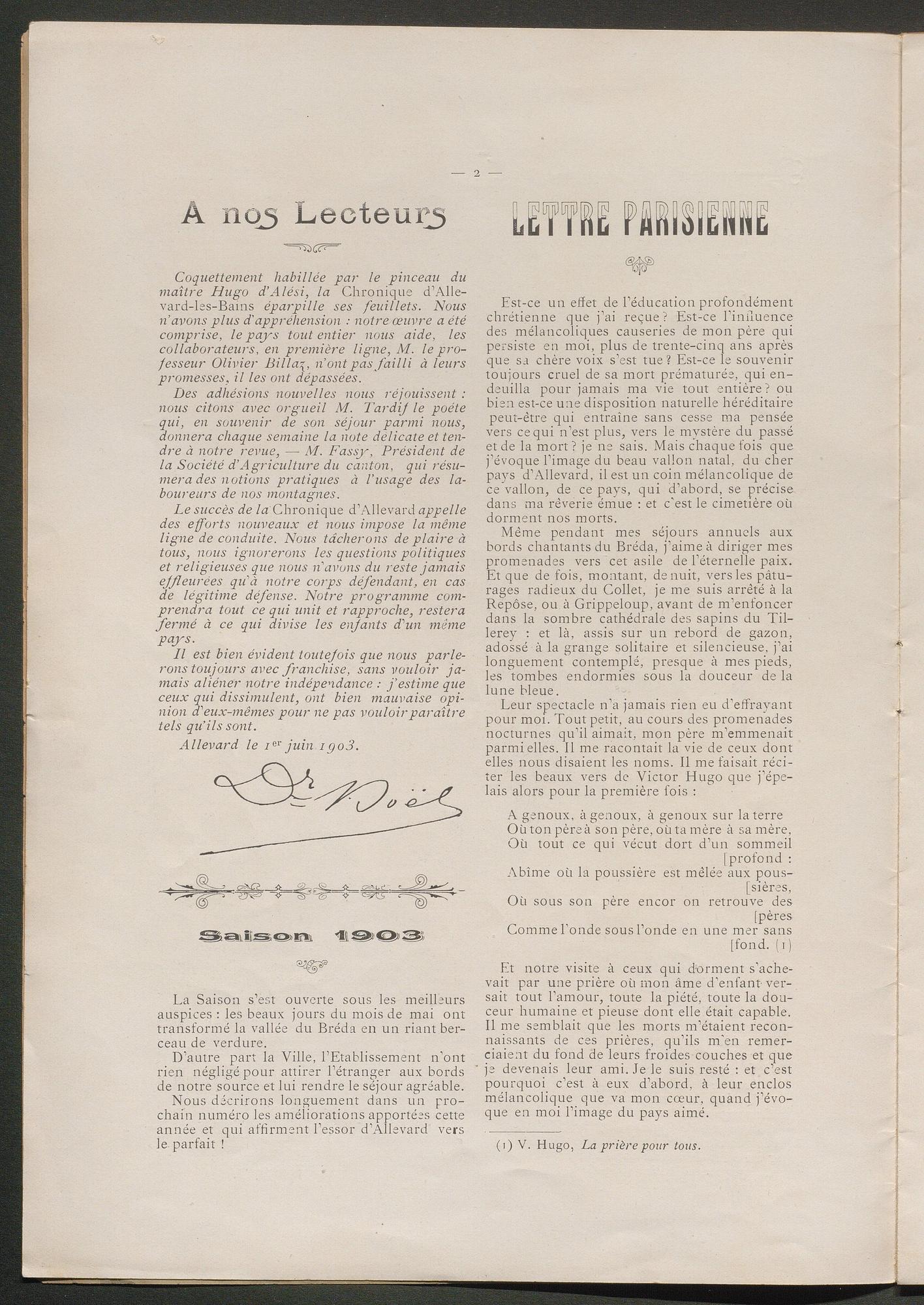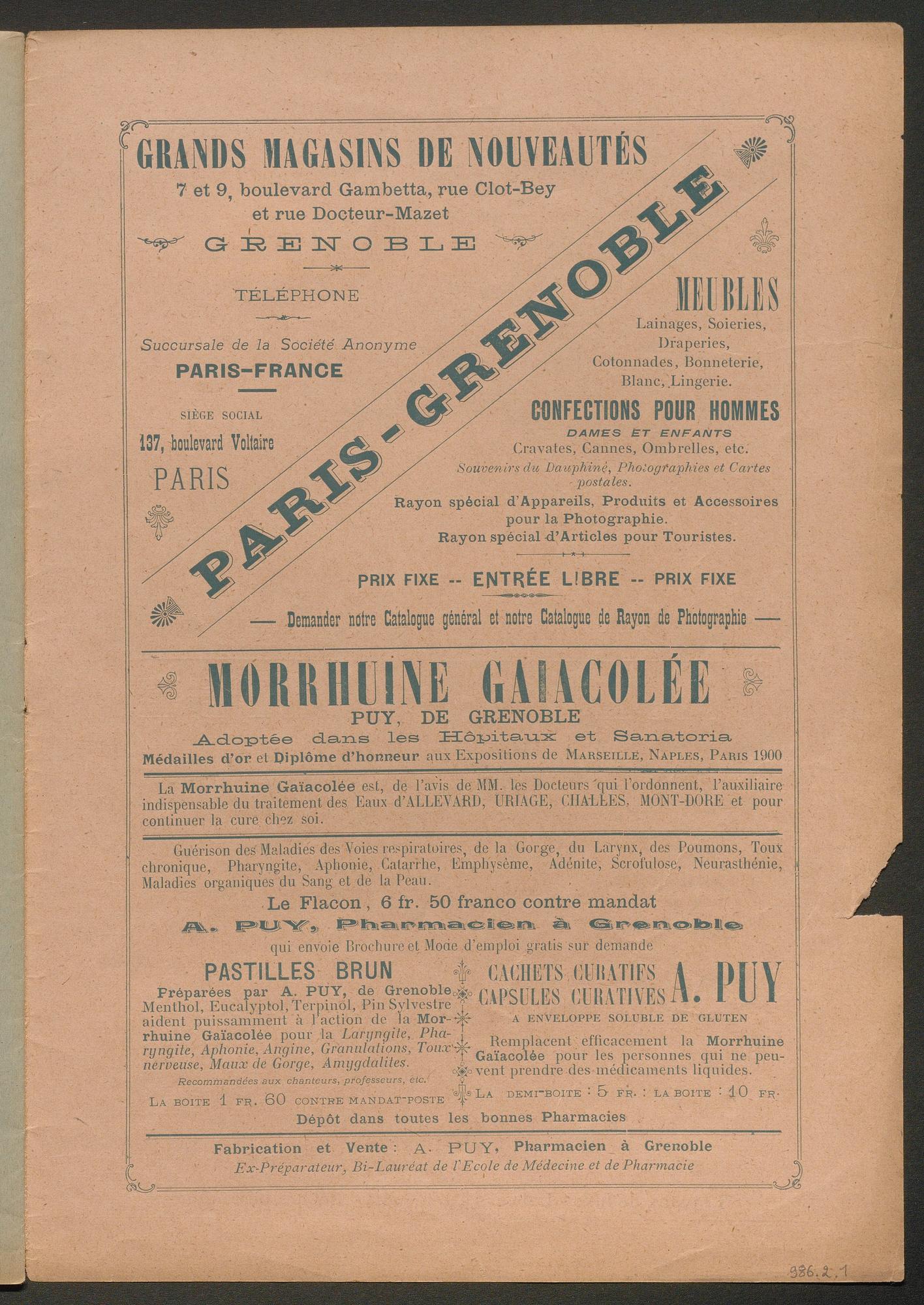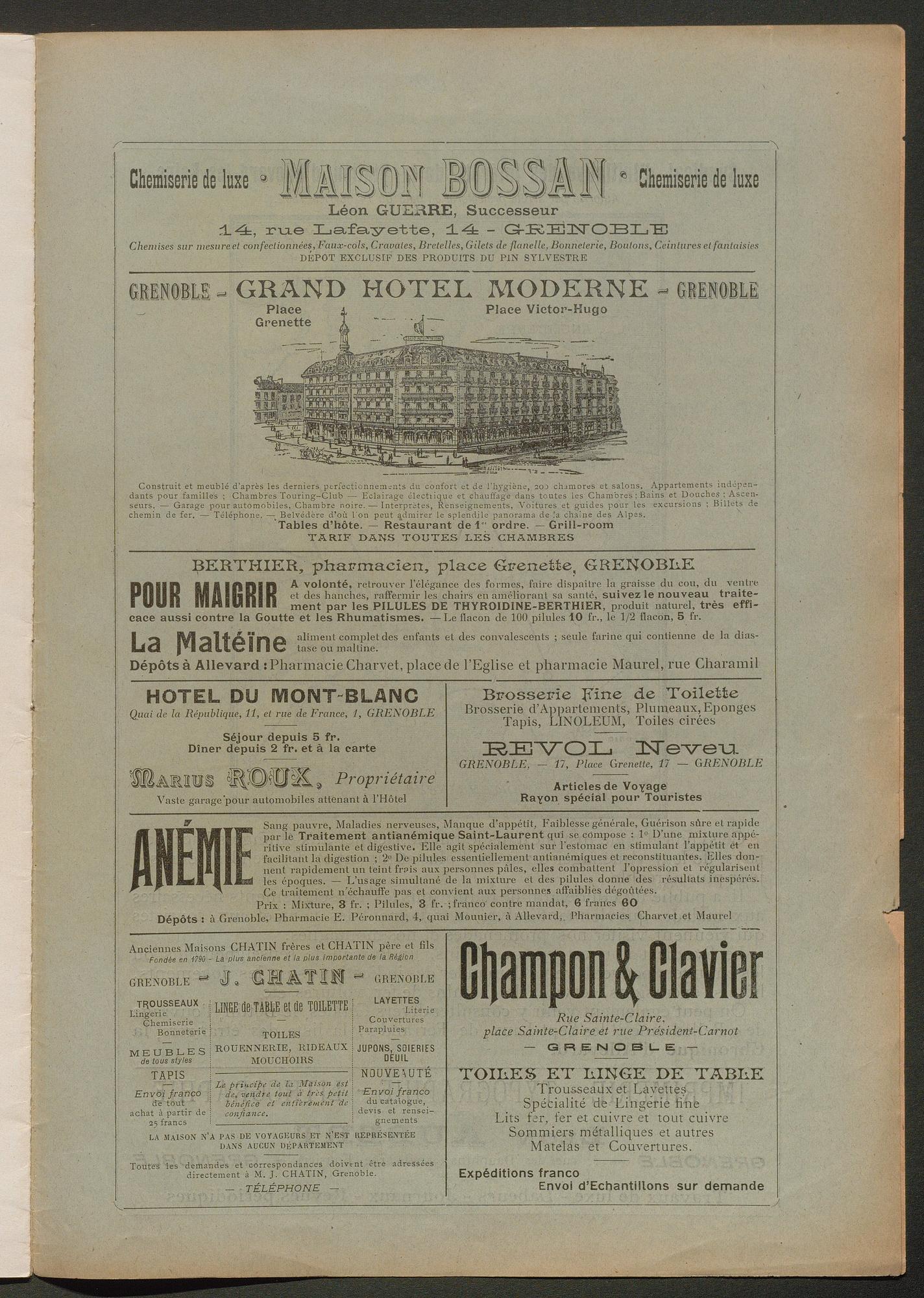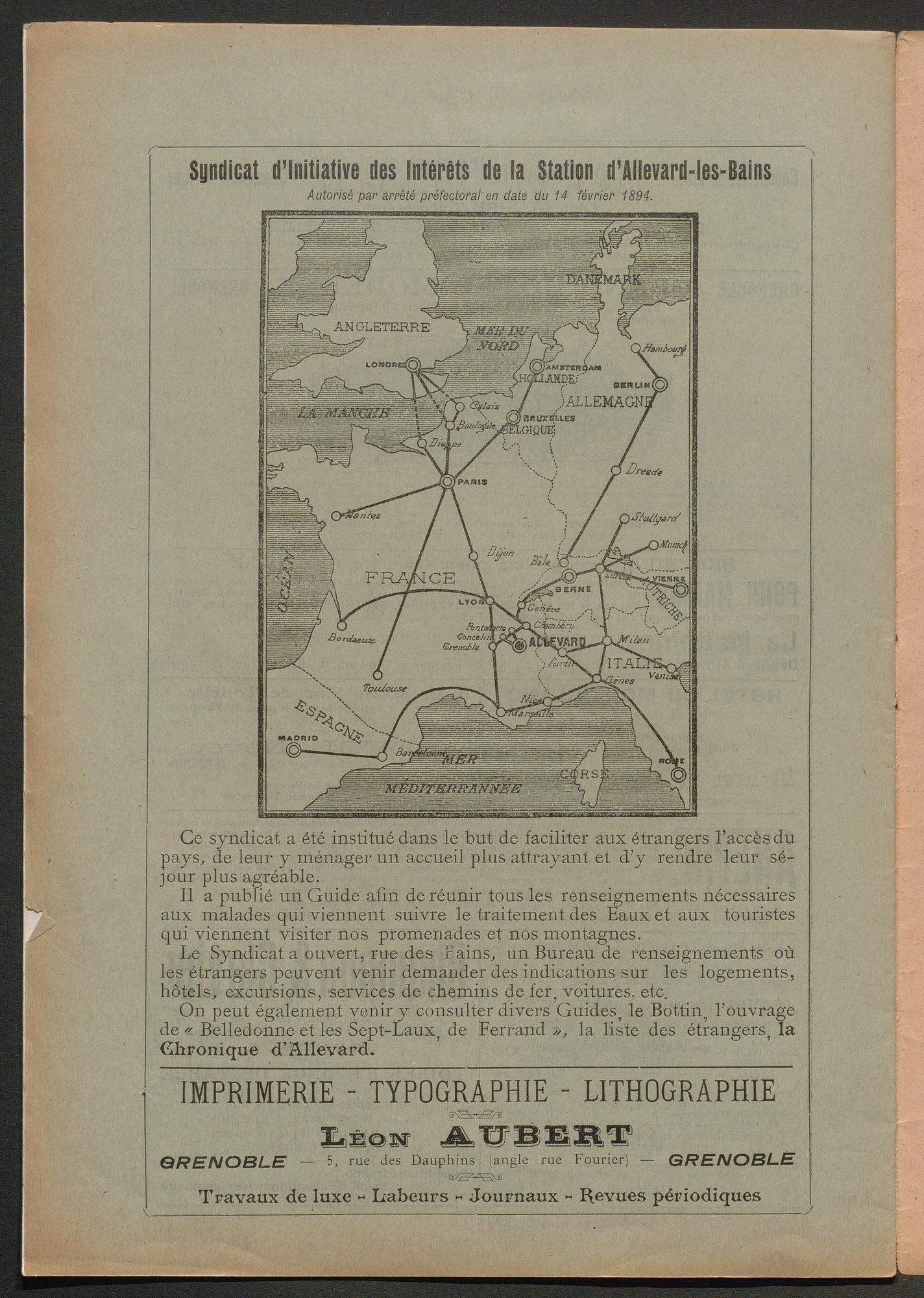 DIRECTEUR : DOCTEUR BOËL - EN VENTE à Allevard : dans le Parc de l'Etablissement, et chez MM. HÉLIE libraire, rue Charamil, et MEUNIER, place de l'Eglise.