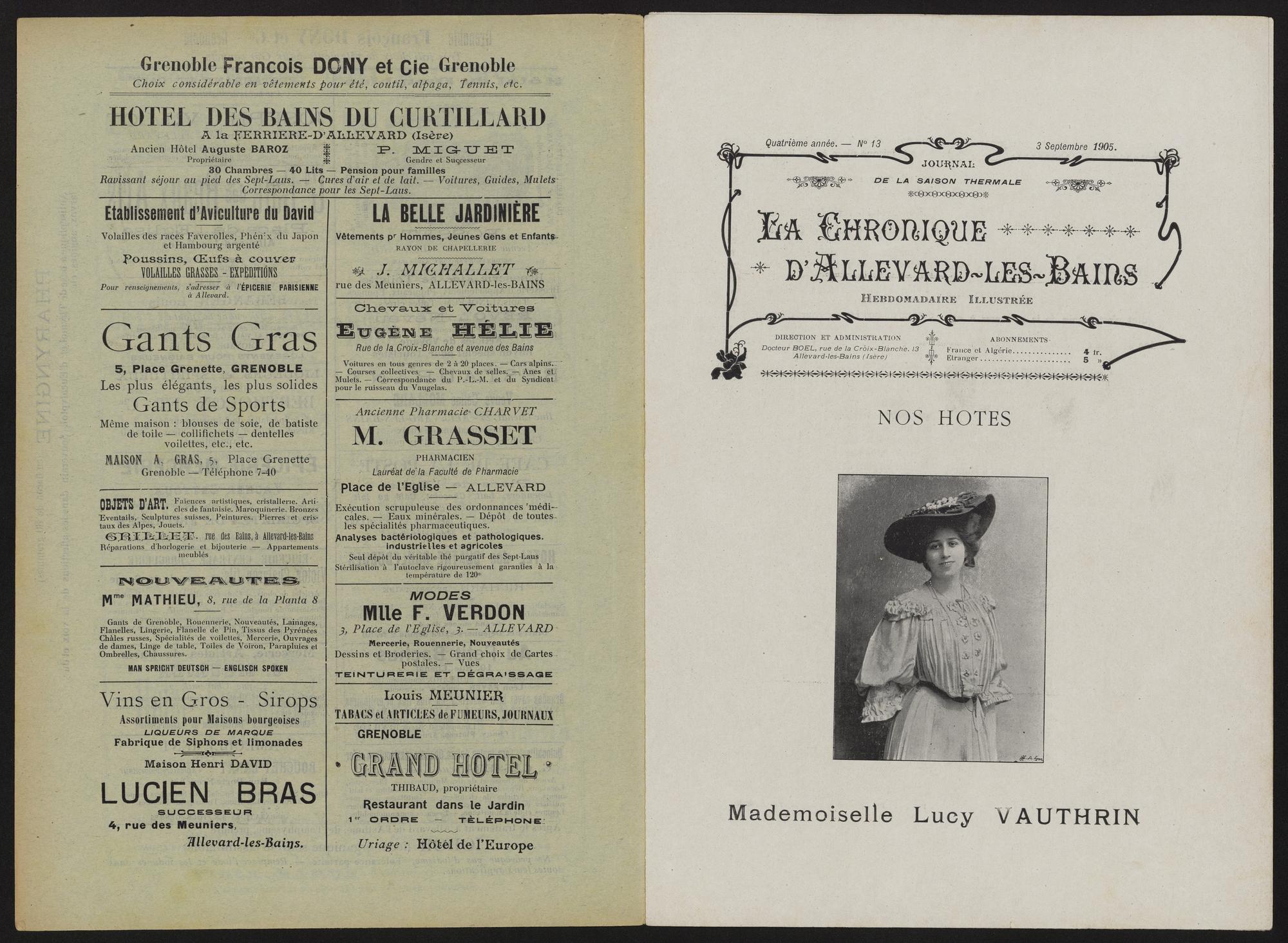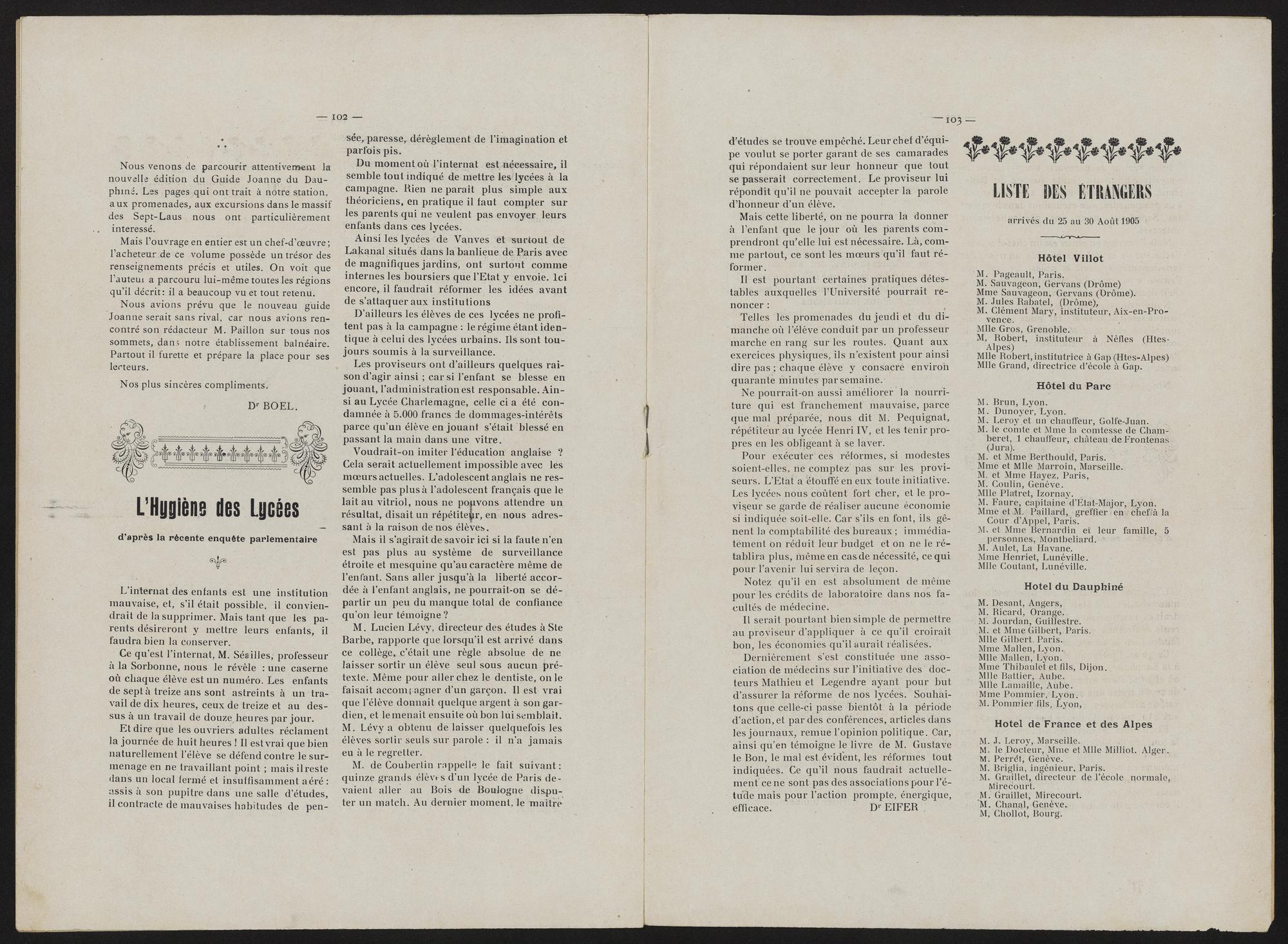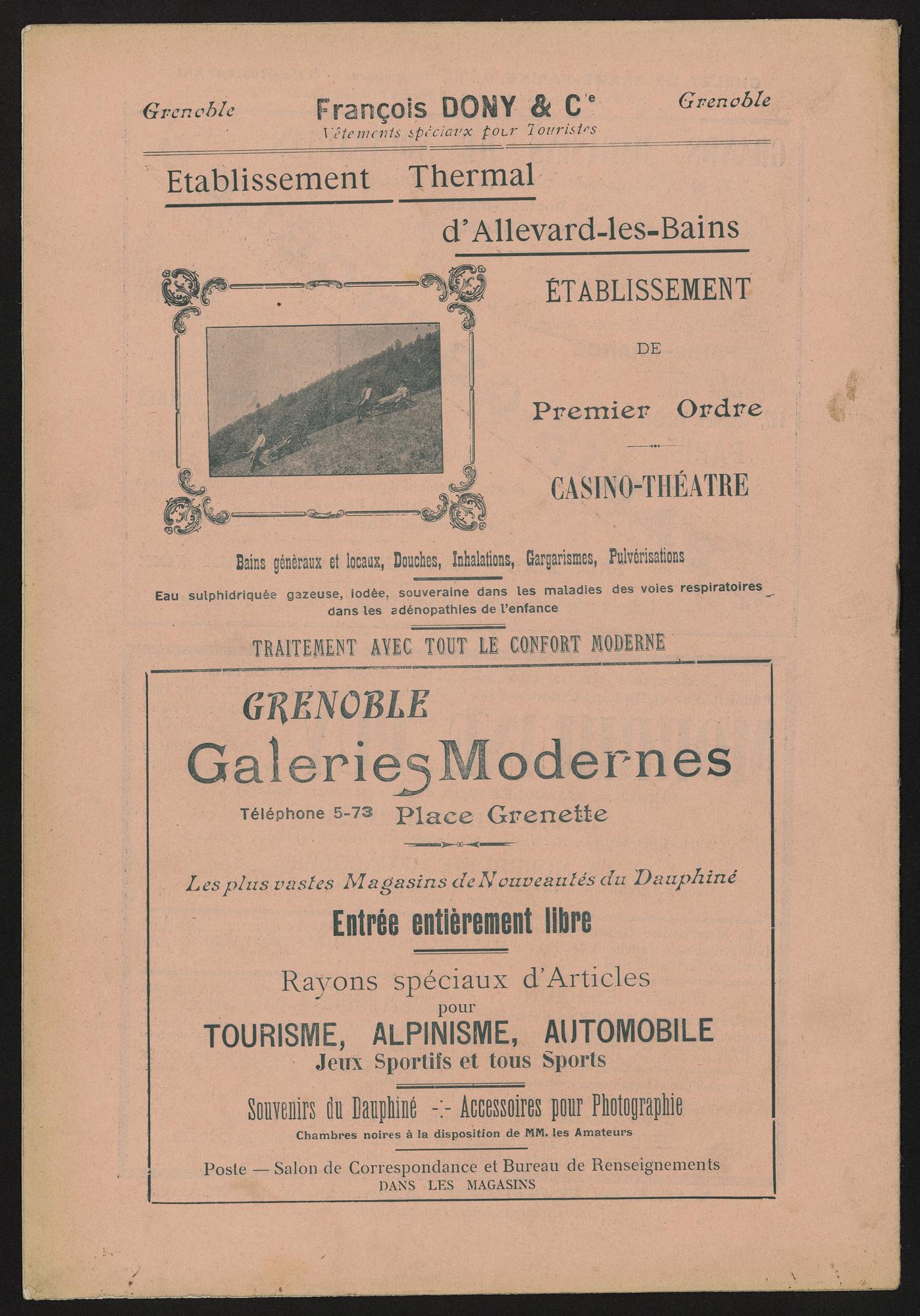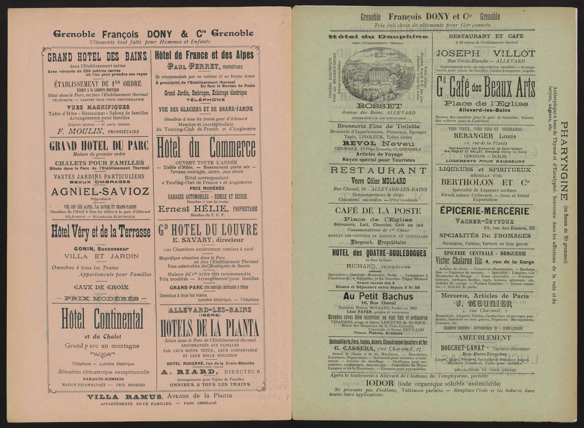 DIRECTEUR : DOCTEUR BOËL - EN VENTE à Allevard : dans le Parc de l'Etablissement, et chez MM. HÉLIE libraire, rue Charamil, et MEUNIER, place de l'Eglise.
