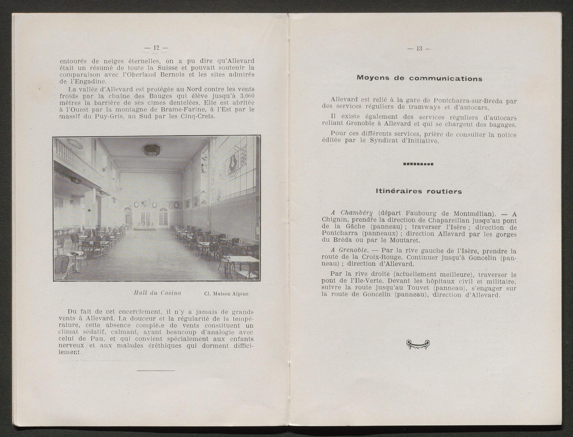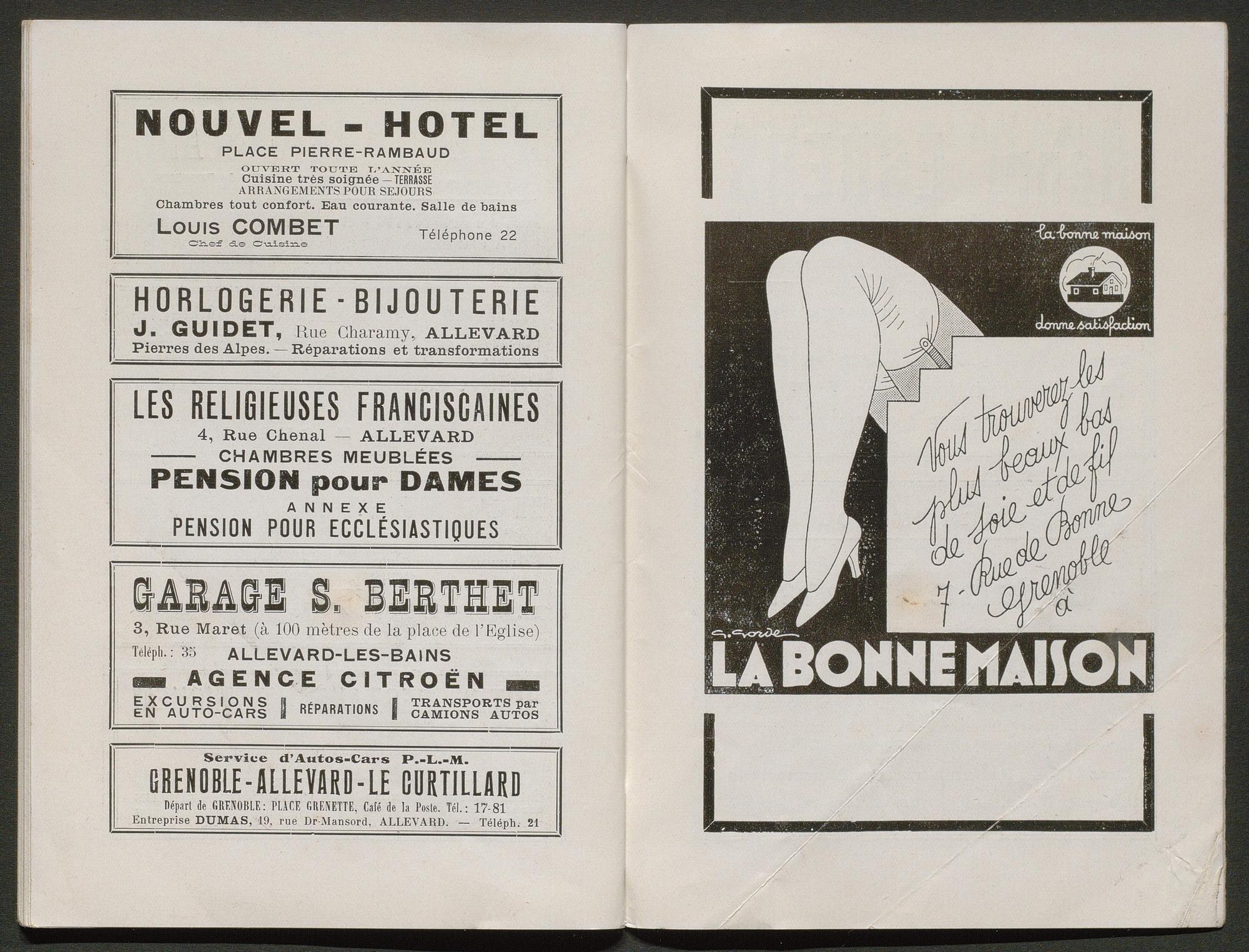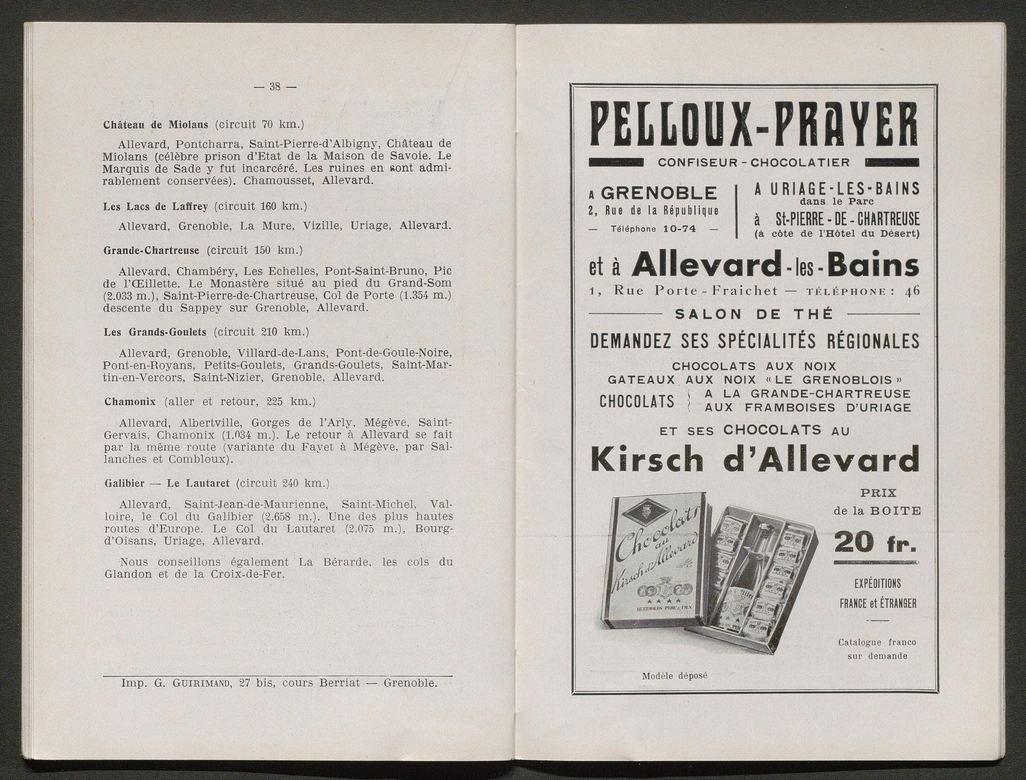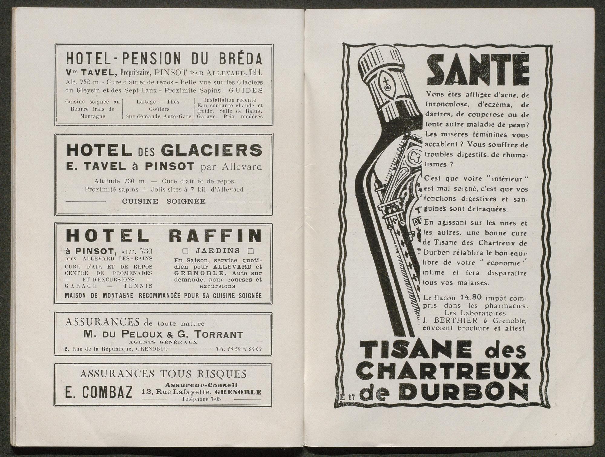 Ce guide touristique recense les activités proposées à Allevard pour les touristes/ curistes, ainsi que des pages publicitaires pour les commerces et hôtels du Pays d’Allevard. Il compte 29 double-pages.