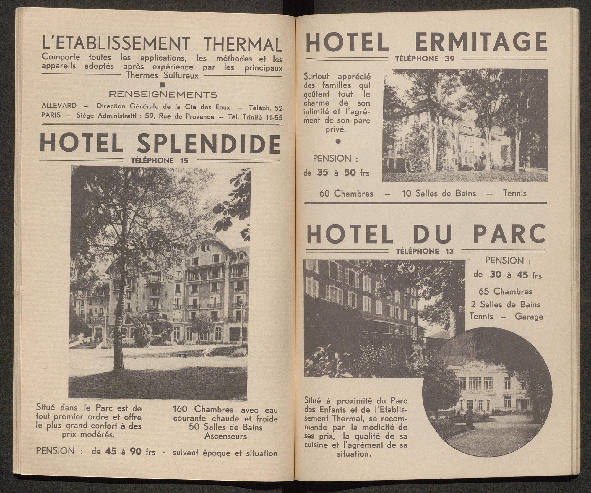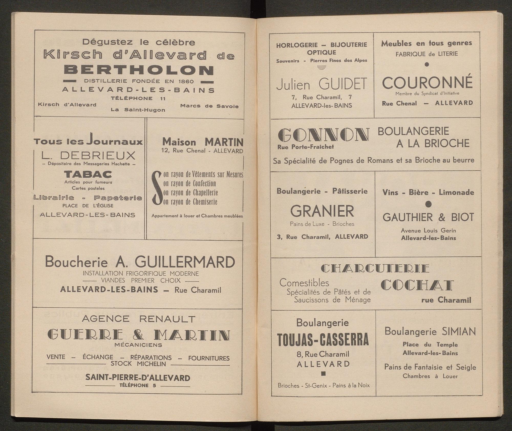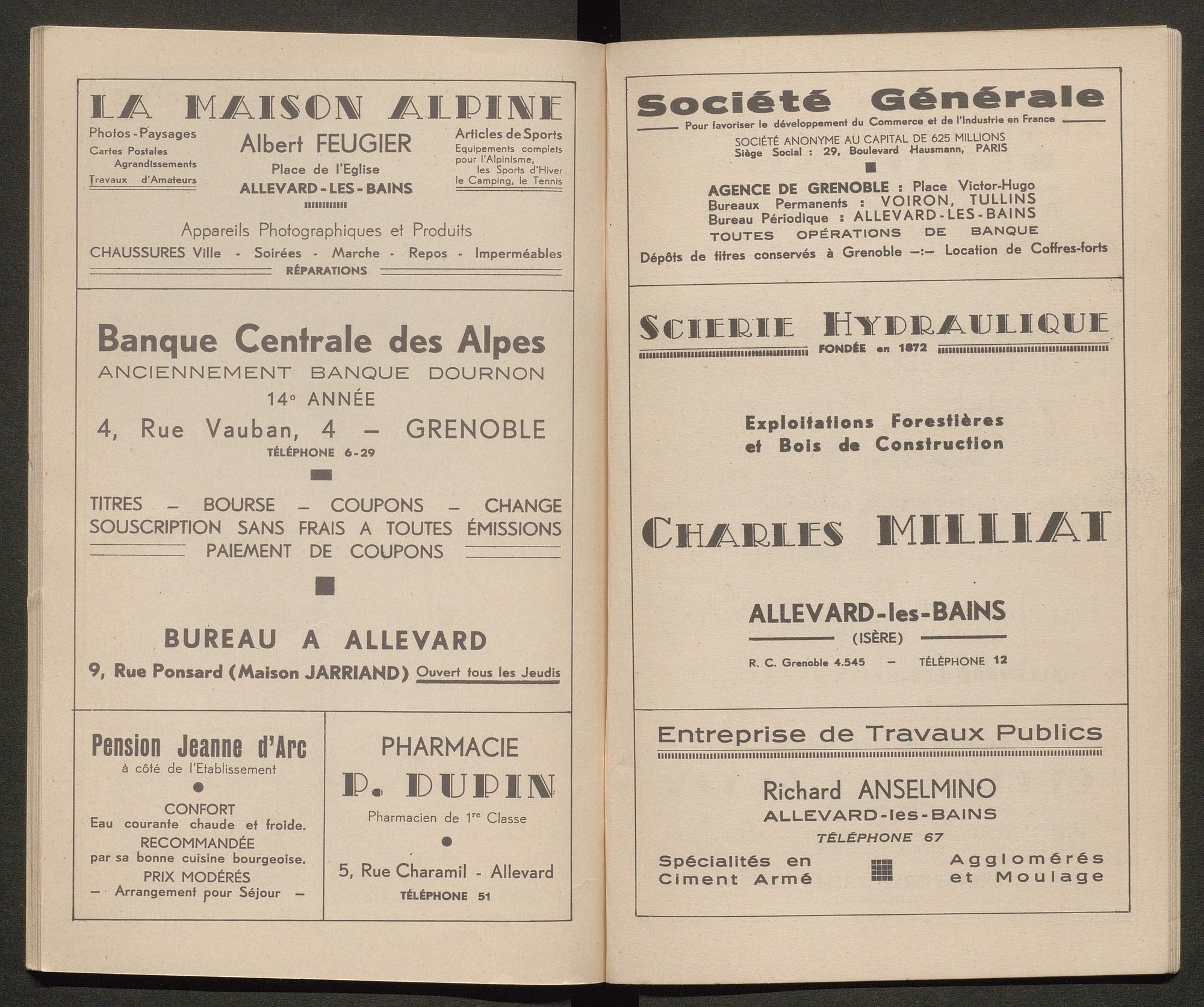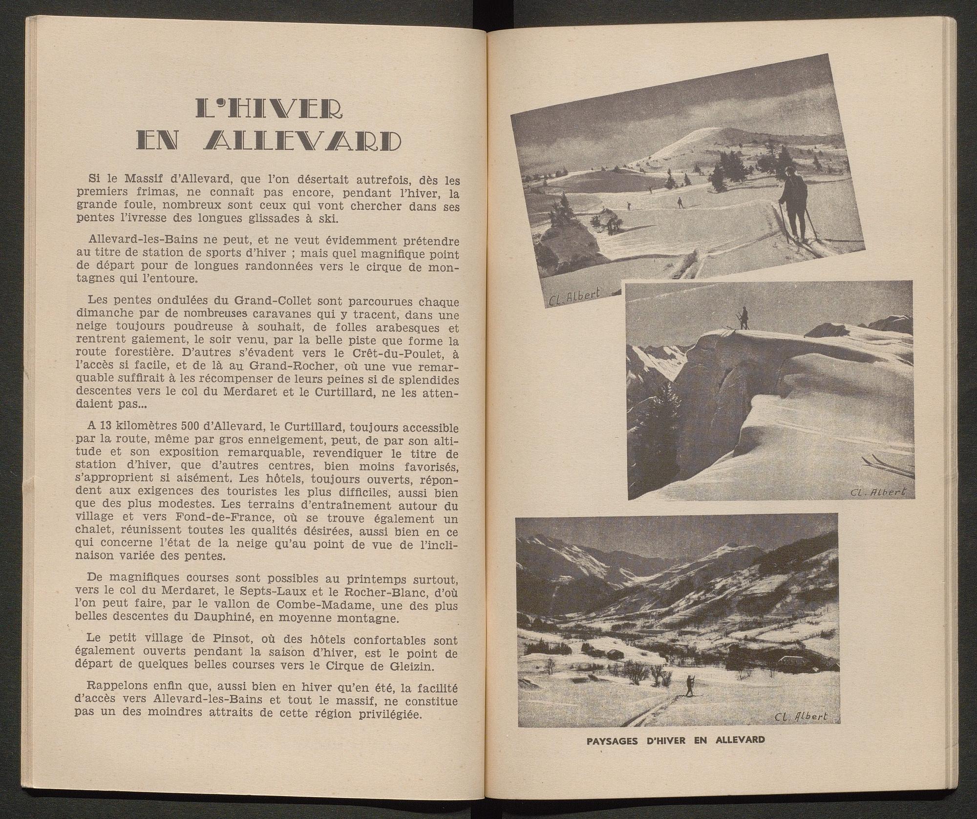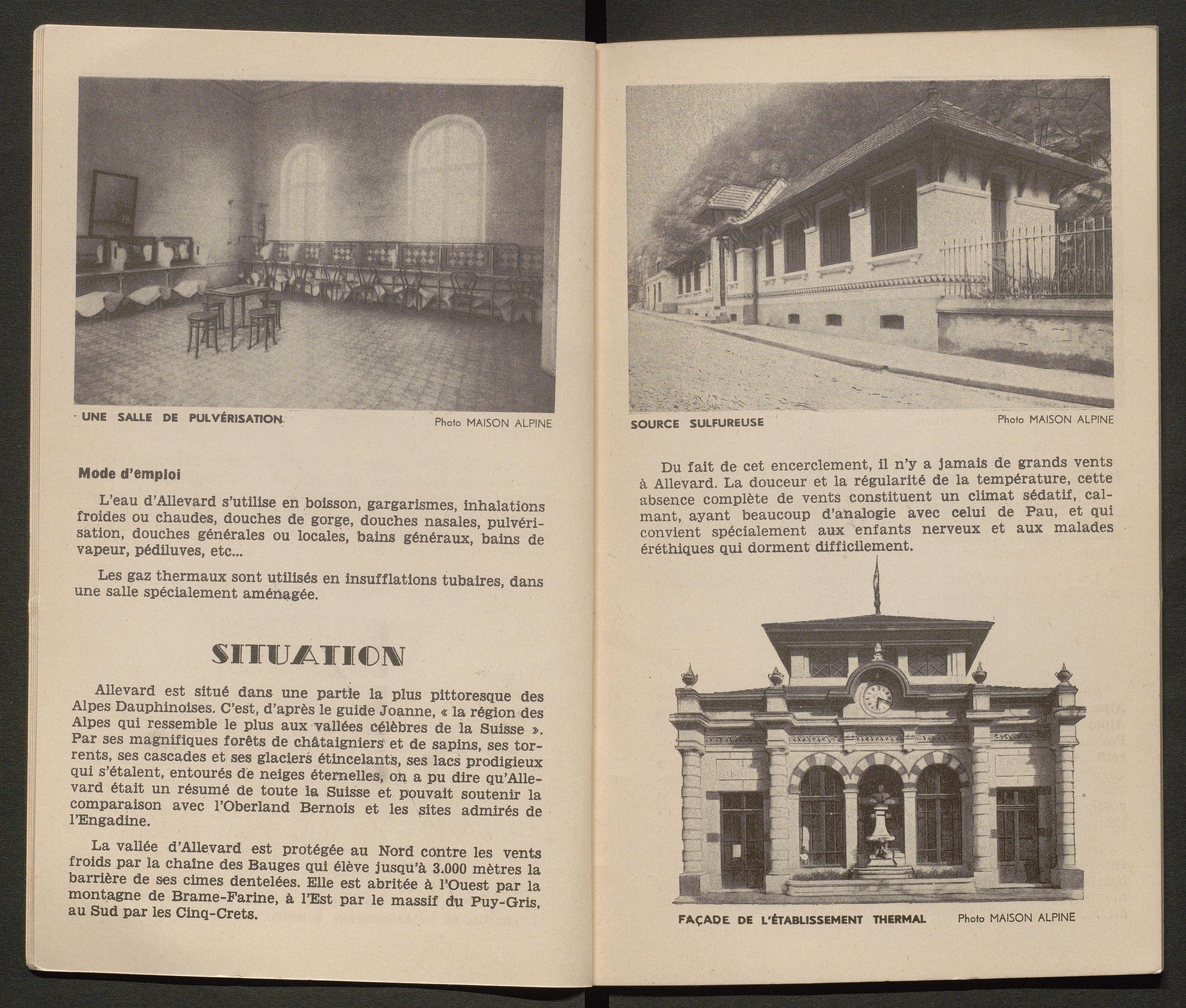 Ce guide touristique recense les activités proposées à Allevard pour les touristes/ curistes, ainsi que des pages publicitaires pour les commerces et hôtels du Pays d’Allevard. Il compte 34 double-pages.