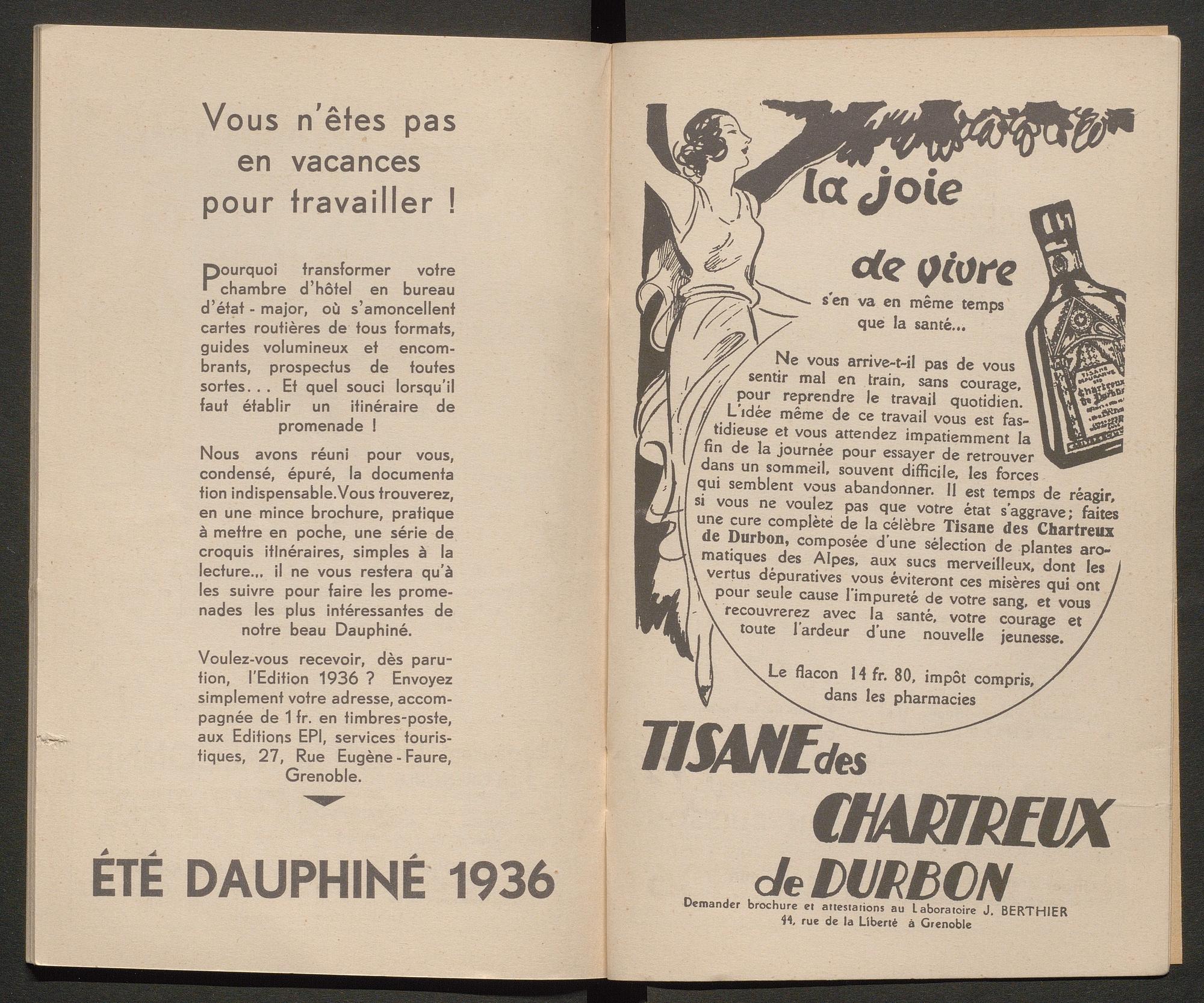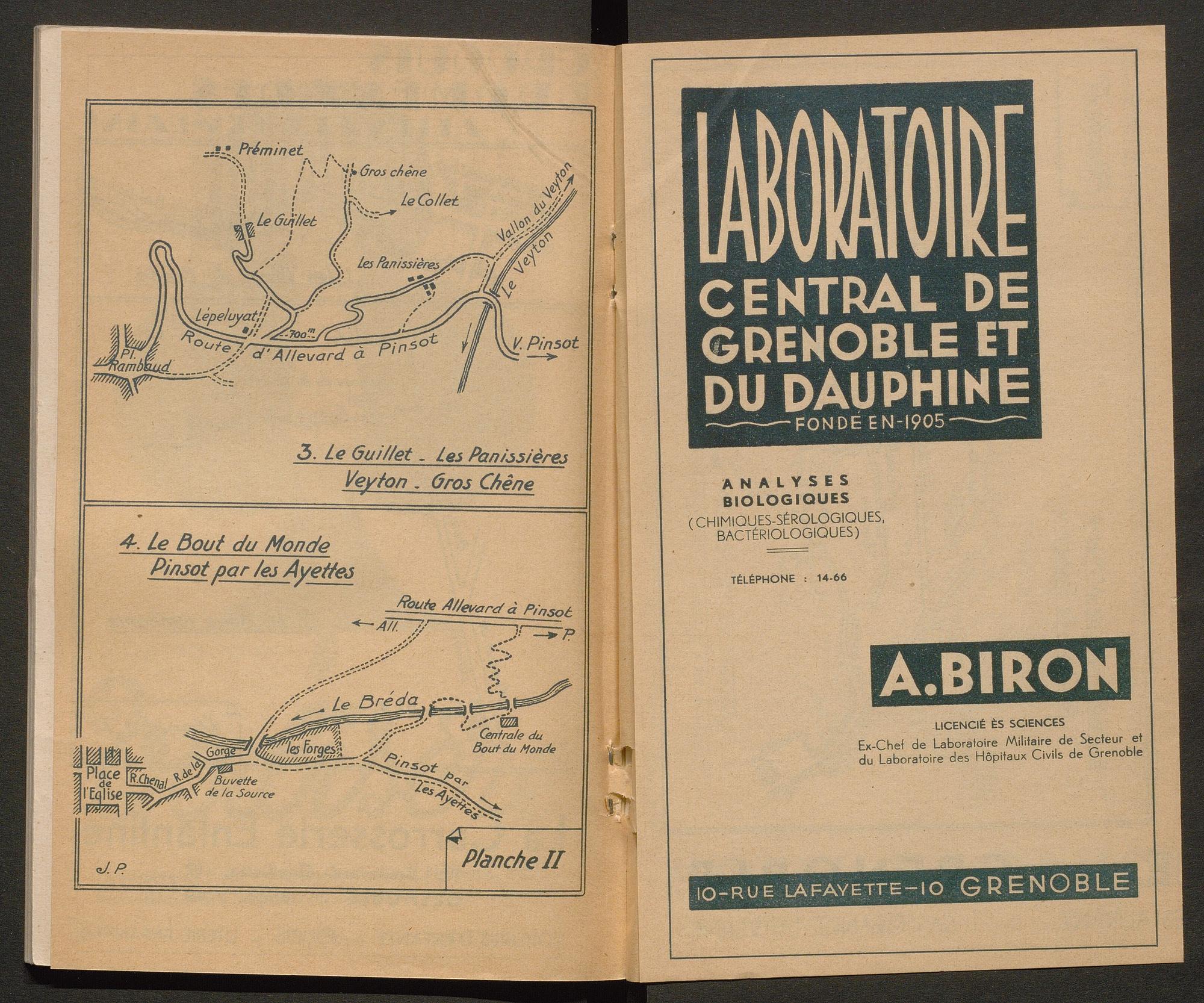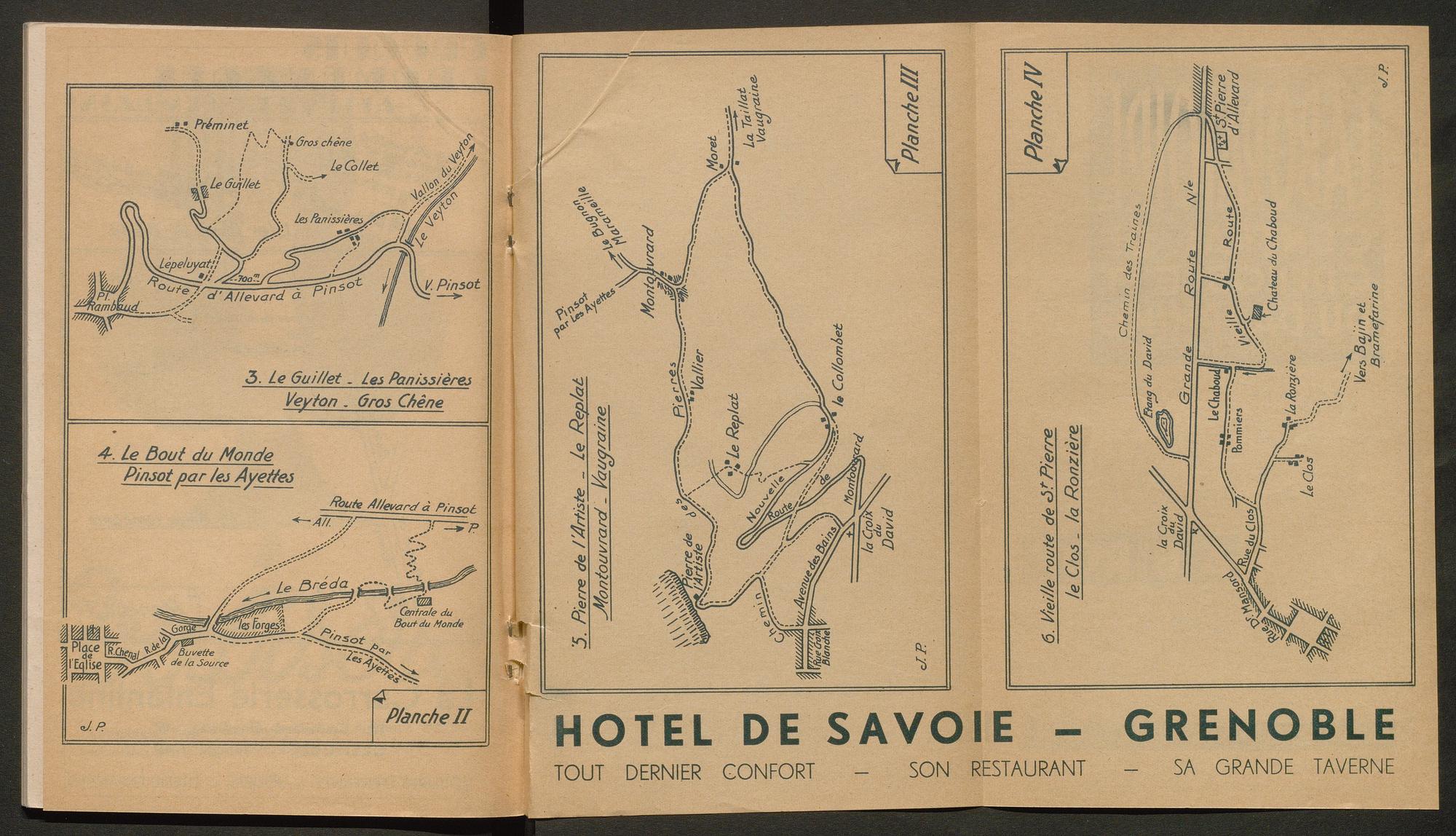 + insertion dans le brochage avec agrafes à la fin de l’ouvrage d’une carte représentant plusieurs croquis de promenades à Allevard, de grand format et repliée 2 fois.