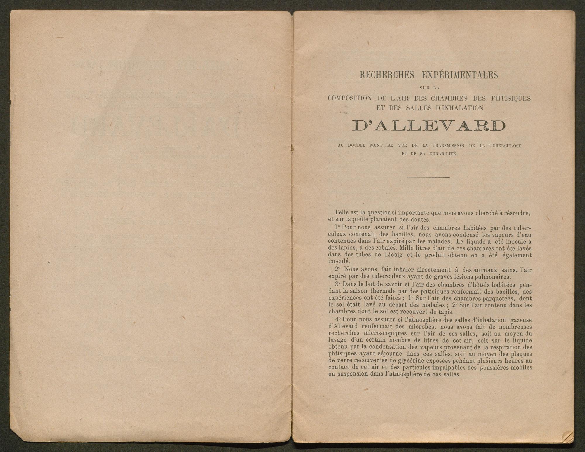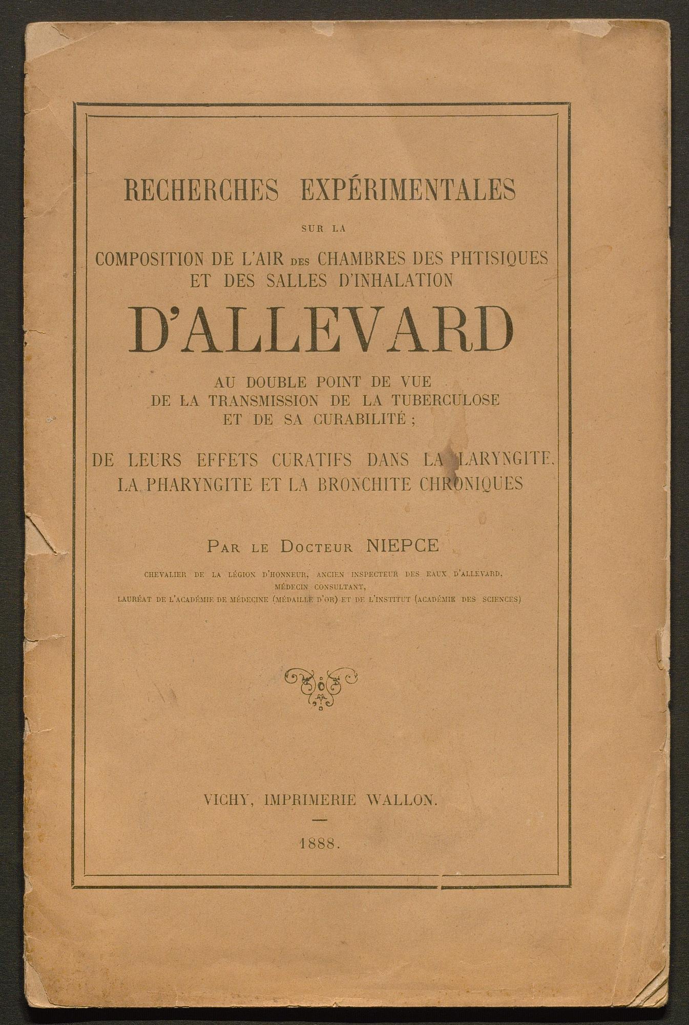 Recherches expérimentales sur la composition de l’air des chambres des phtisiques et des salles d’inhalation d’Allevard