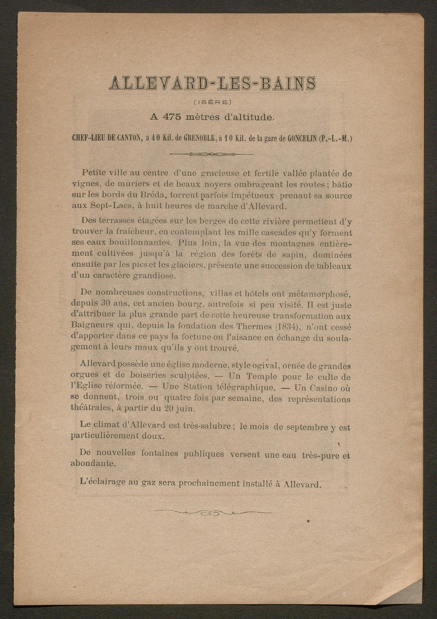 Création : NIÈPCE, Bernard (10 mai 1815 – 1894) ( auteur); Imprimerie WALLON ( imprimeur);