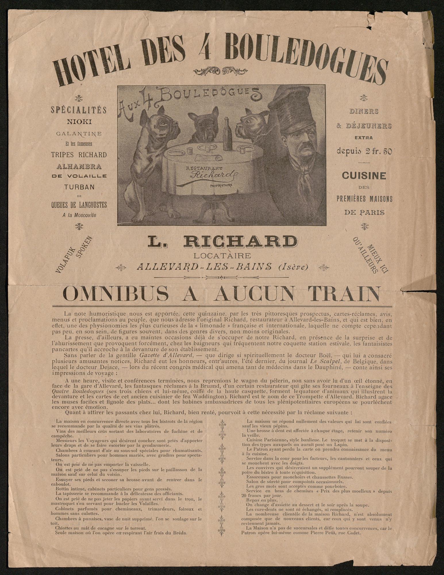 Publicité pour l’hôtel des 4 bouledogues