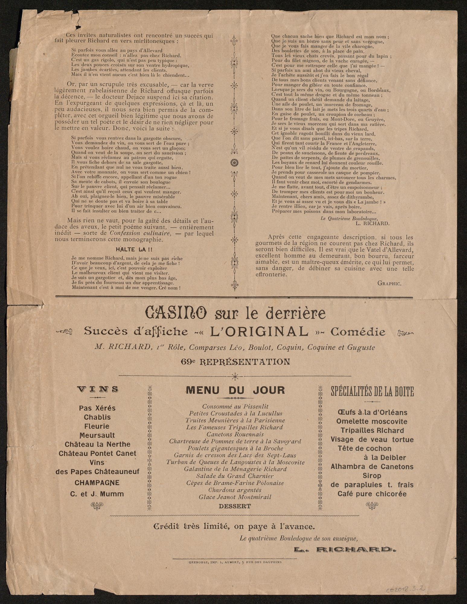 Exécution : Imprimerie L. AUBERT ( imprimeur);