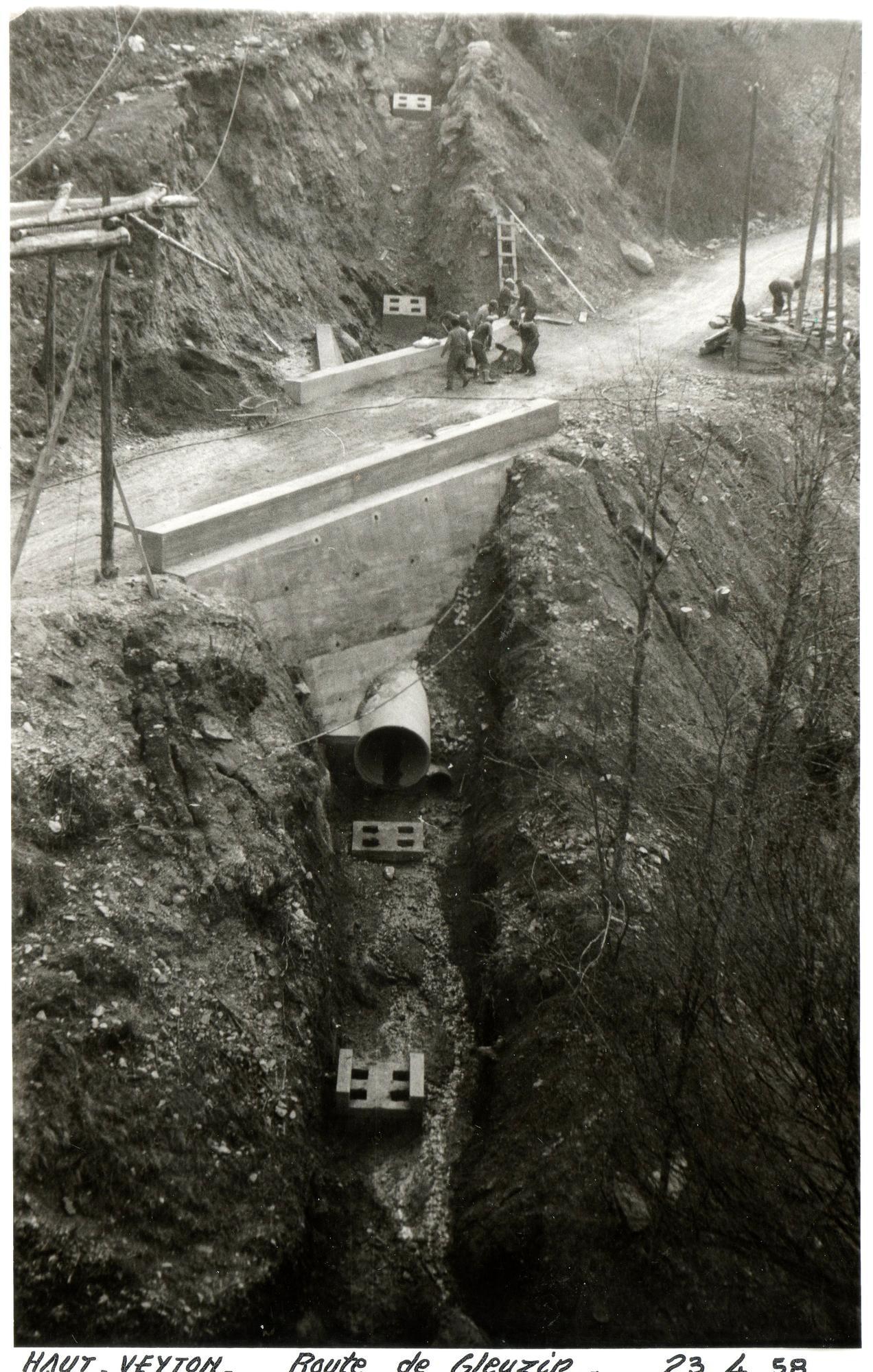 Chantier de Haut-Veyton, installation de la conduite forcée sous la route de Gleysin