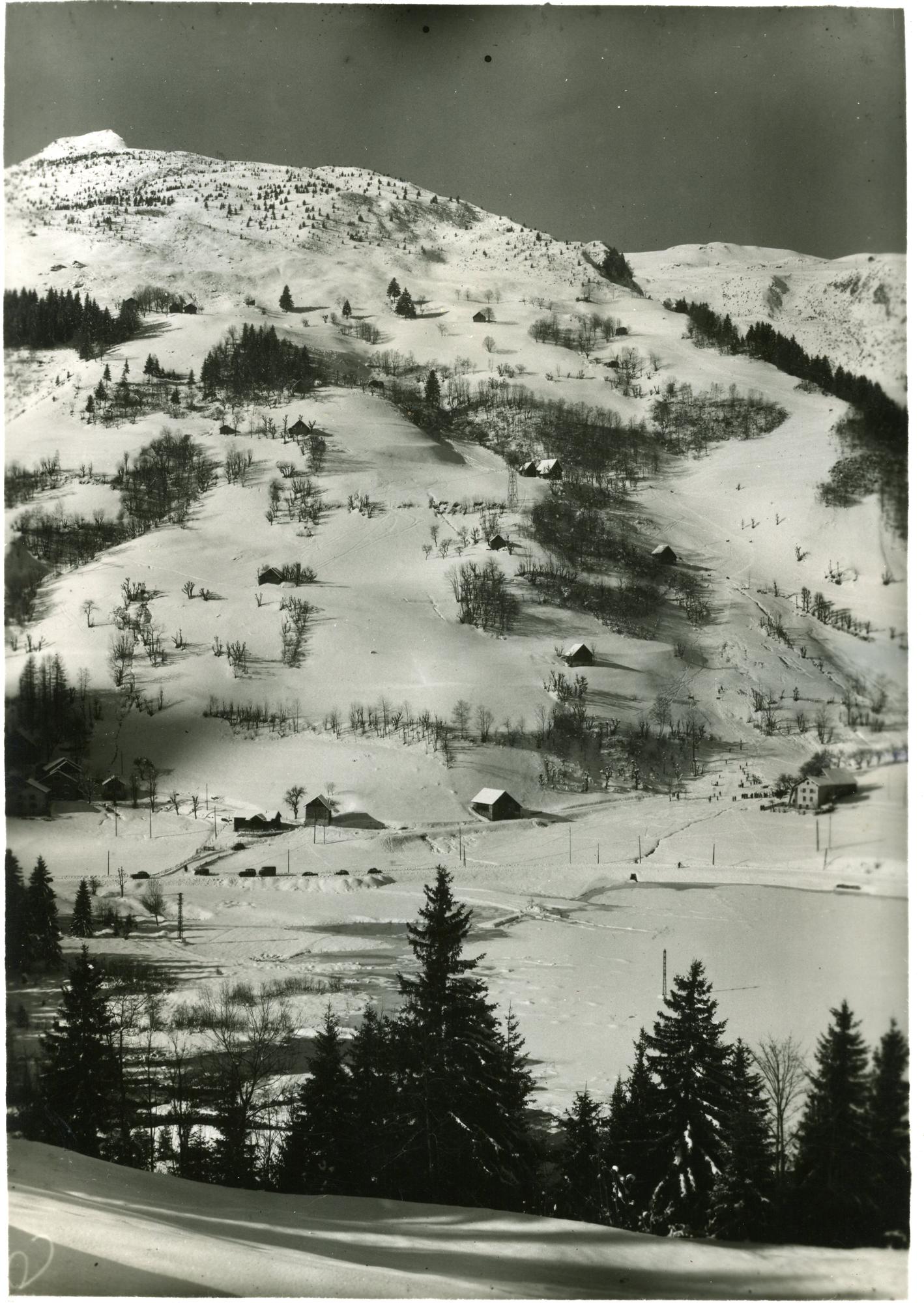 Vue des pistes de descente du Crêt du Bœuf à La Bourgeat