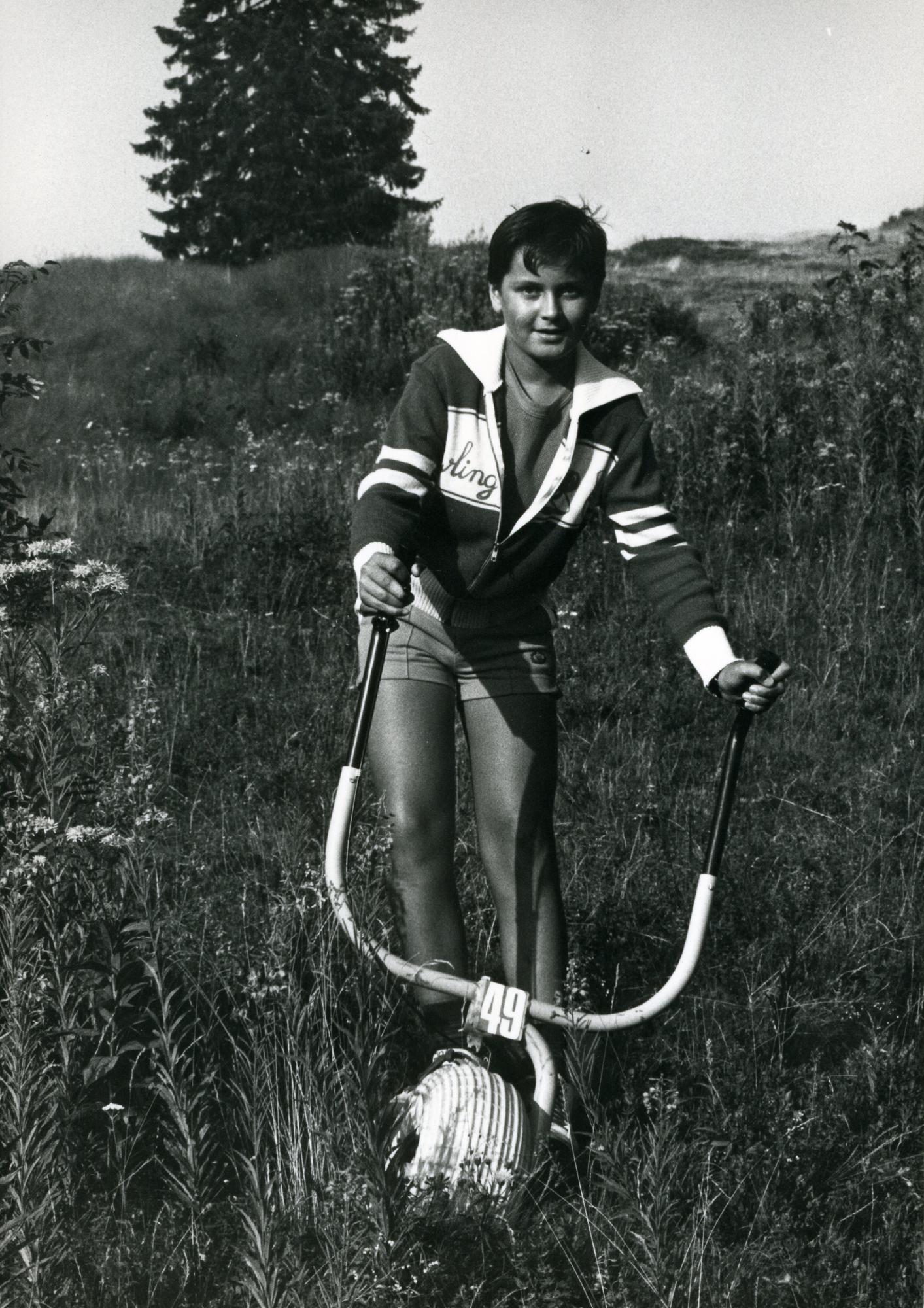 Vue d’un adolescent descendant une piste à bord d’une trottin’herbe