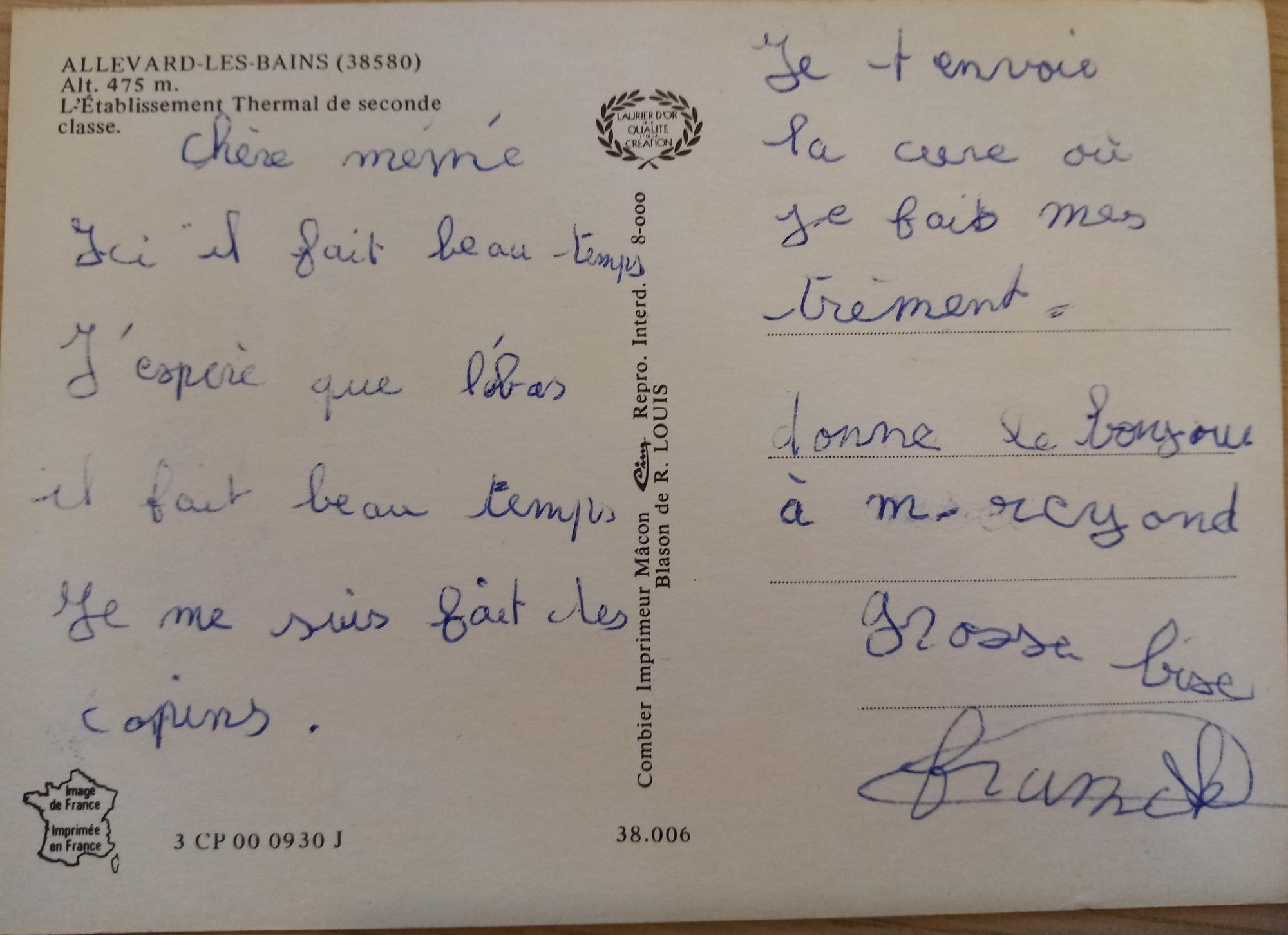 Cette carte postale a probablement circulé sous enveloppe, envoyée par un enfant à sa « mémé ».