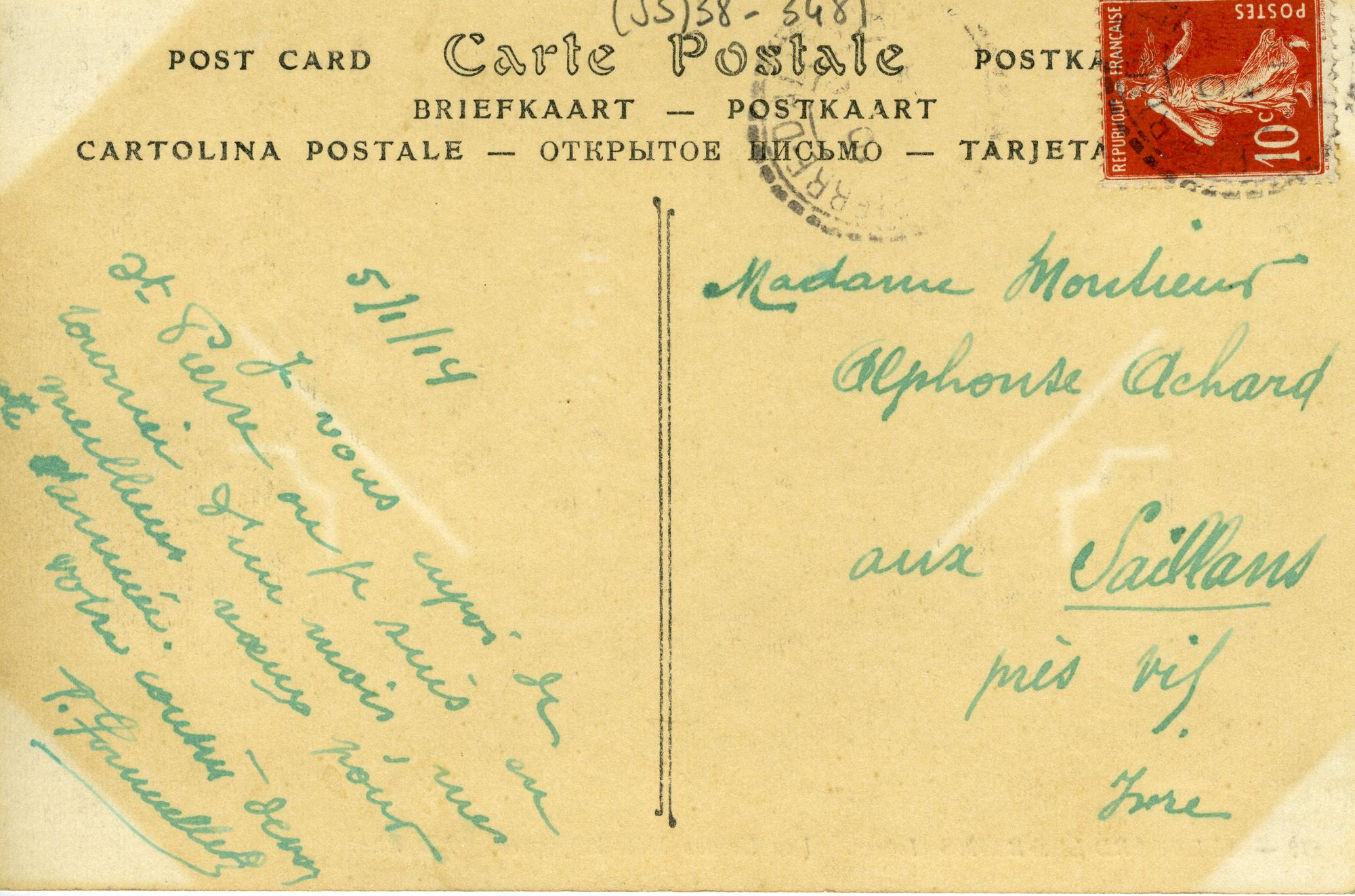 Cette carte postale a été utilisée comme une carte de vœux, et a circulé en 1914.