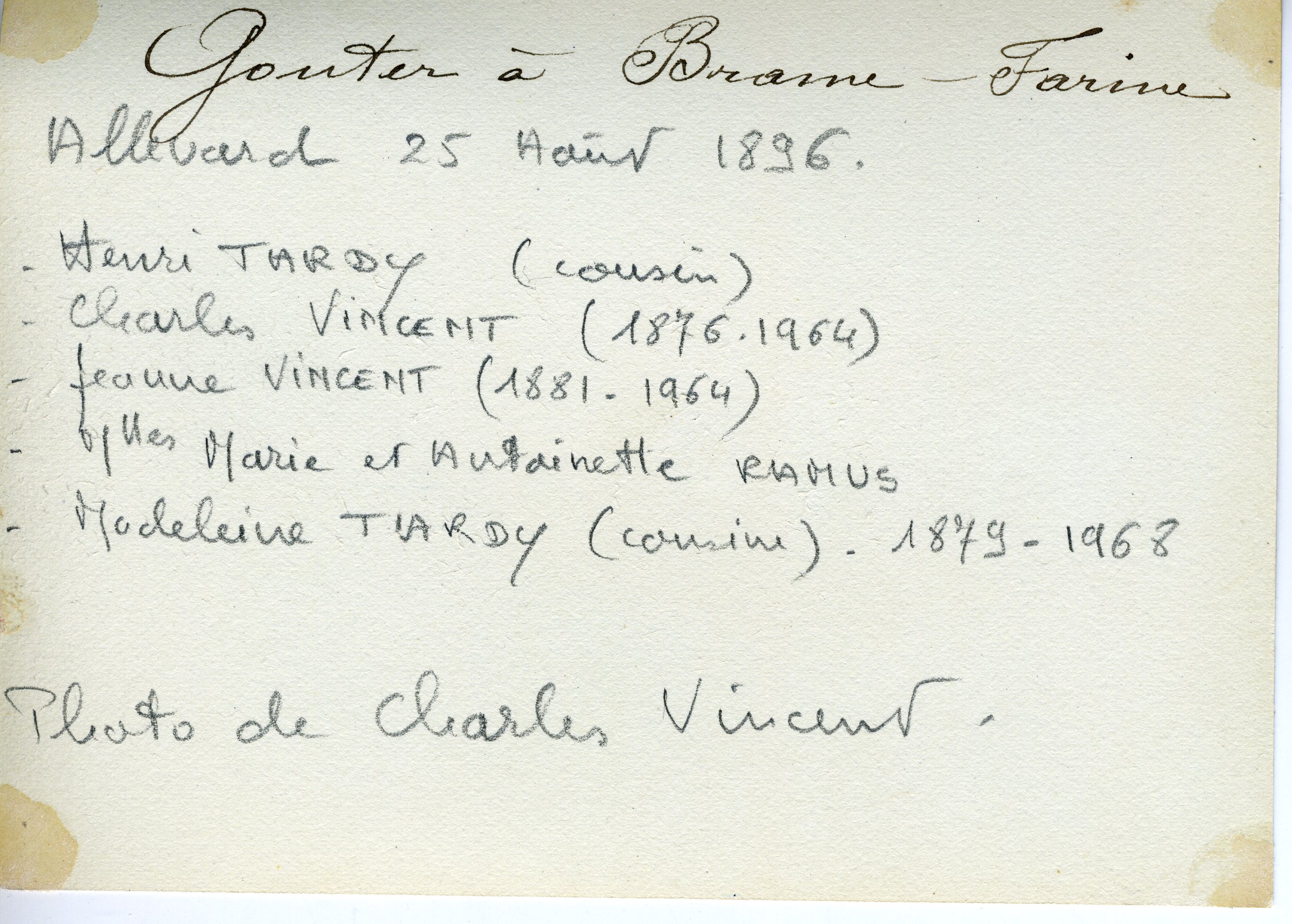 À noter : il est indiqué au revers de la photographie que Charles Vincent est l’auteur de la photographie : cette information est erronée puisqu’il apparaît sur la photographie.