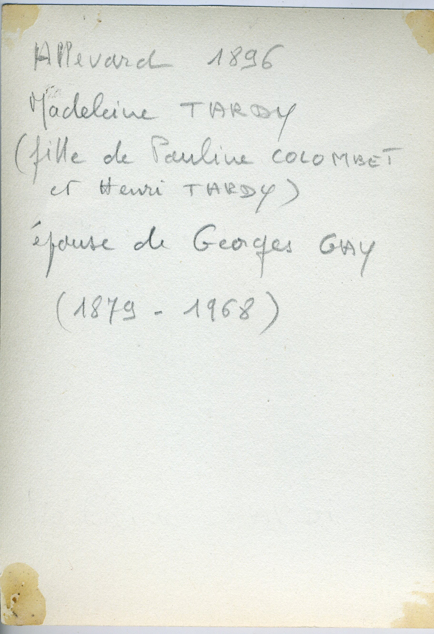 Au revers, des inscriptions nous renseignent sur l’auteur de la photographie, la personne qui y figure et la date à laquelle elle a été prise.