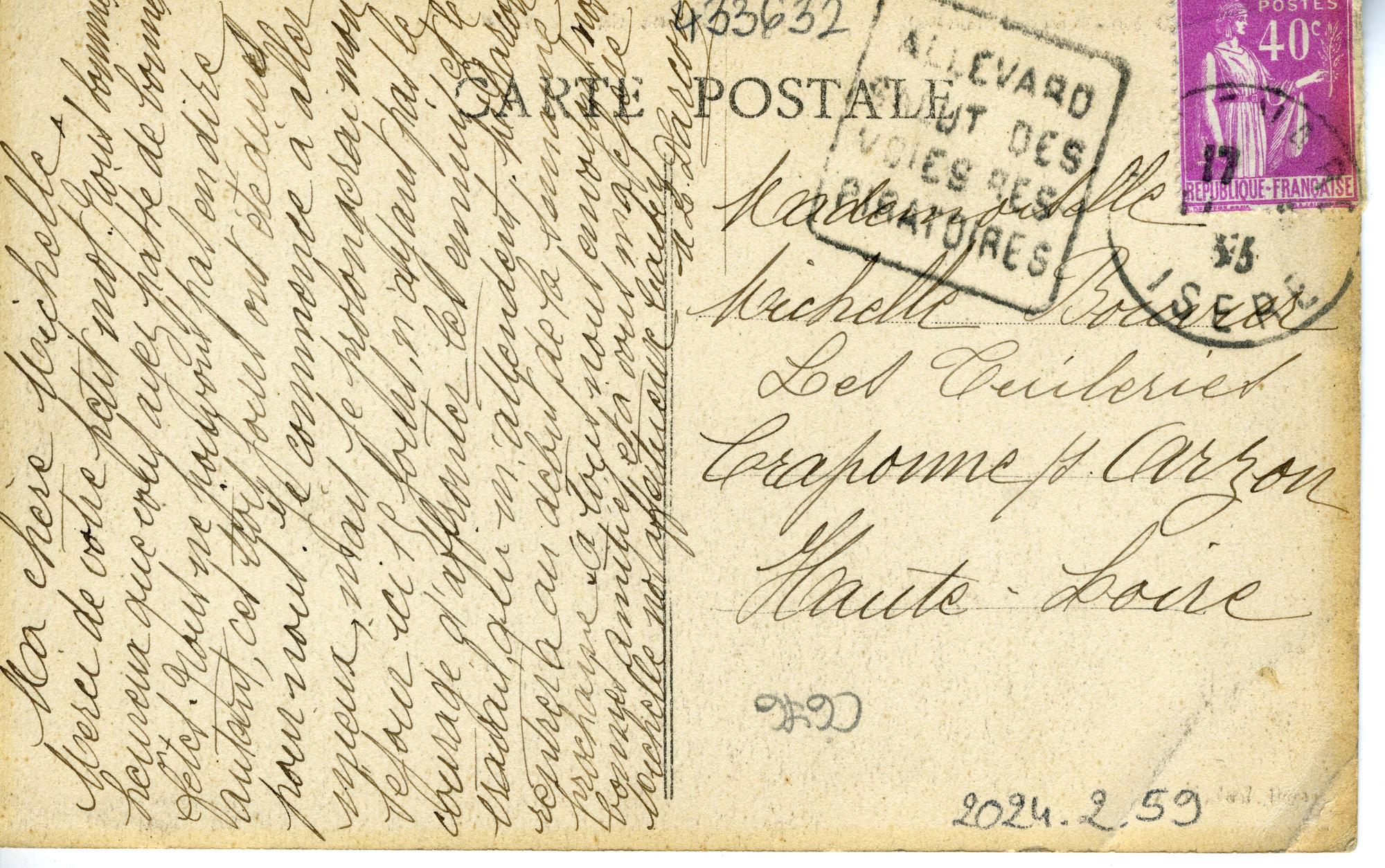 Au revers figure une oblitération vantant la station thermale : « Salut des voies respiratoires ».