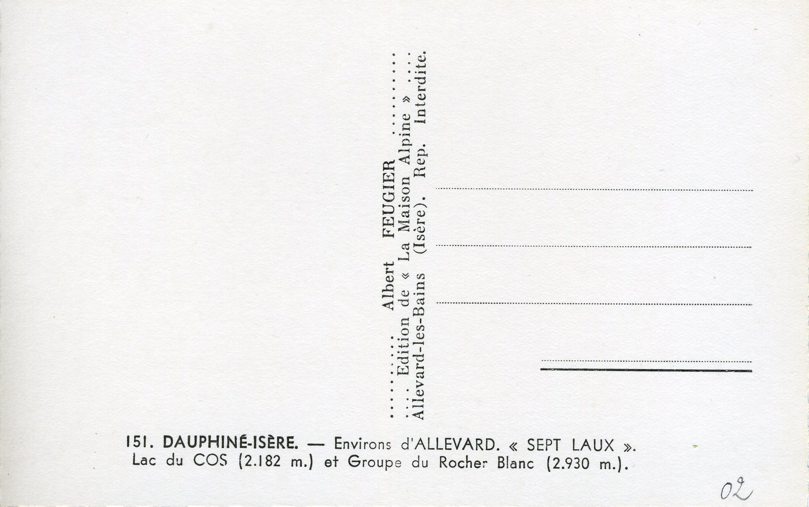 Création : FEUGIER, Albert Marius (Saint-Marcellin, 1893 – Allevard, 1962) ( photographe); Maison Alpine ( éditeur); (La Maison Alpine est une maison d’édition de cartes postales créée à Allevard par Albert Feugier.)