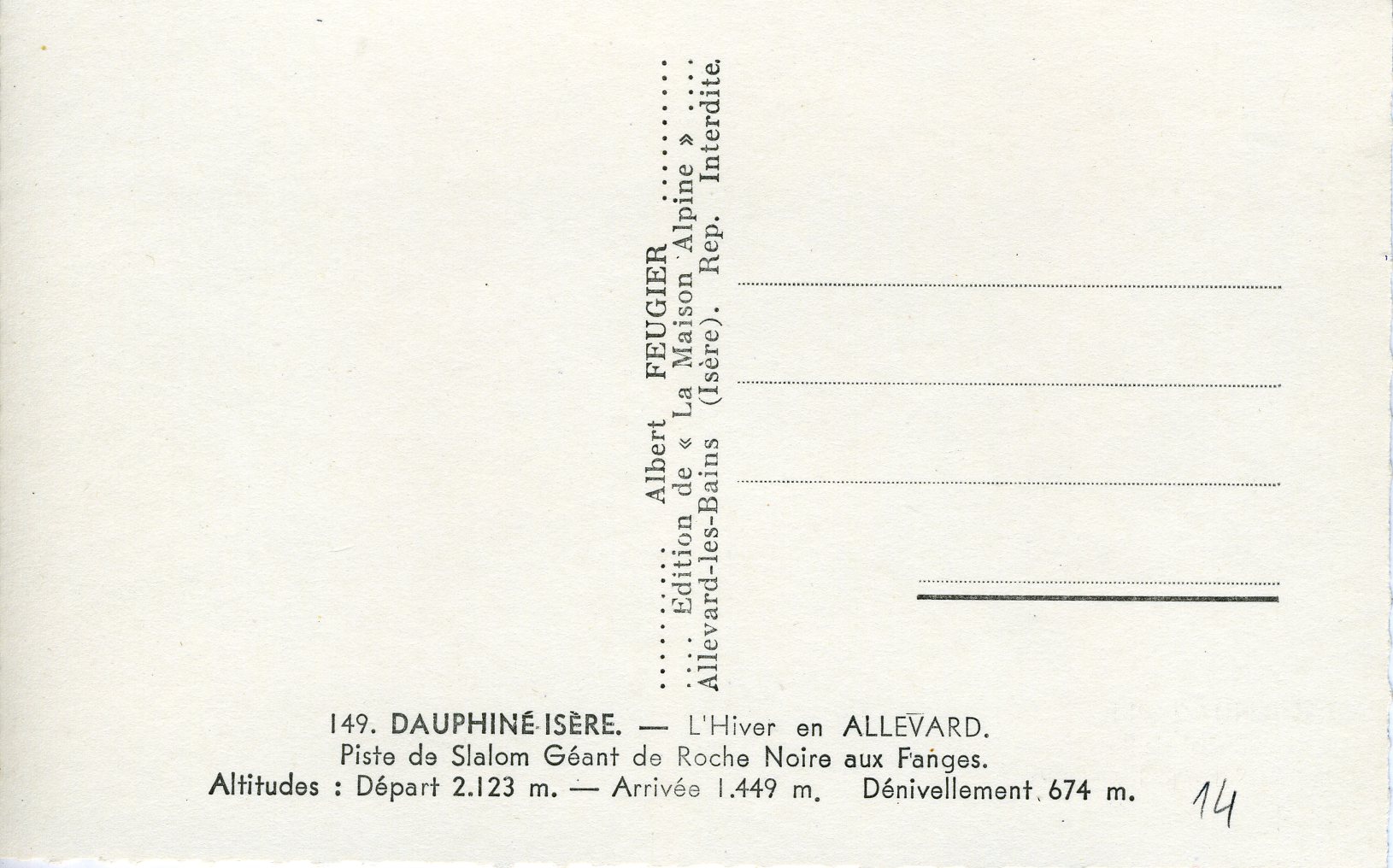 Création : FEUGIER, Albert Marius (Saint-Marcellin, 1893 – Allevard, 1962) ( photographe); Maison Alpine ( éditeur); (La Maison Alpine est une maison d’édition de cartes postales créée à Allevard par Albert Feugier.)