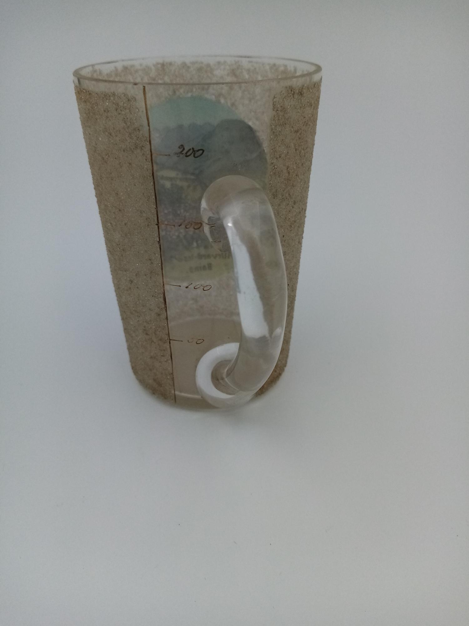 Il s’agit d’un verre à anse gradué et peint, et comportant l’inscription « Allevard les Bains ».